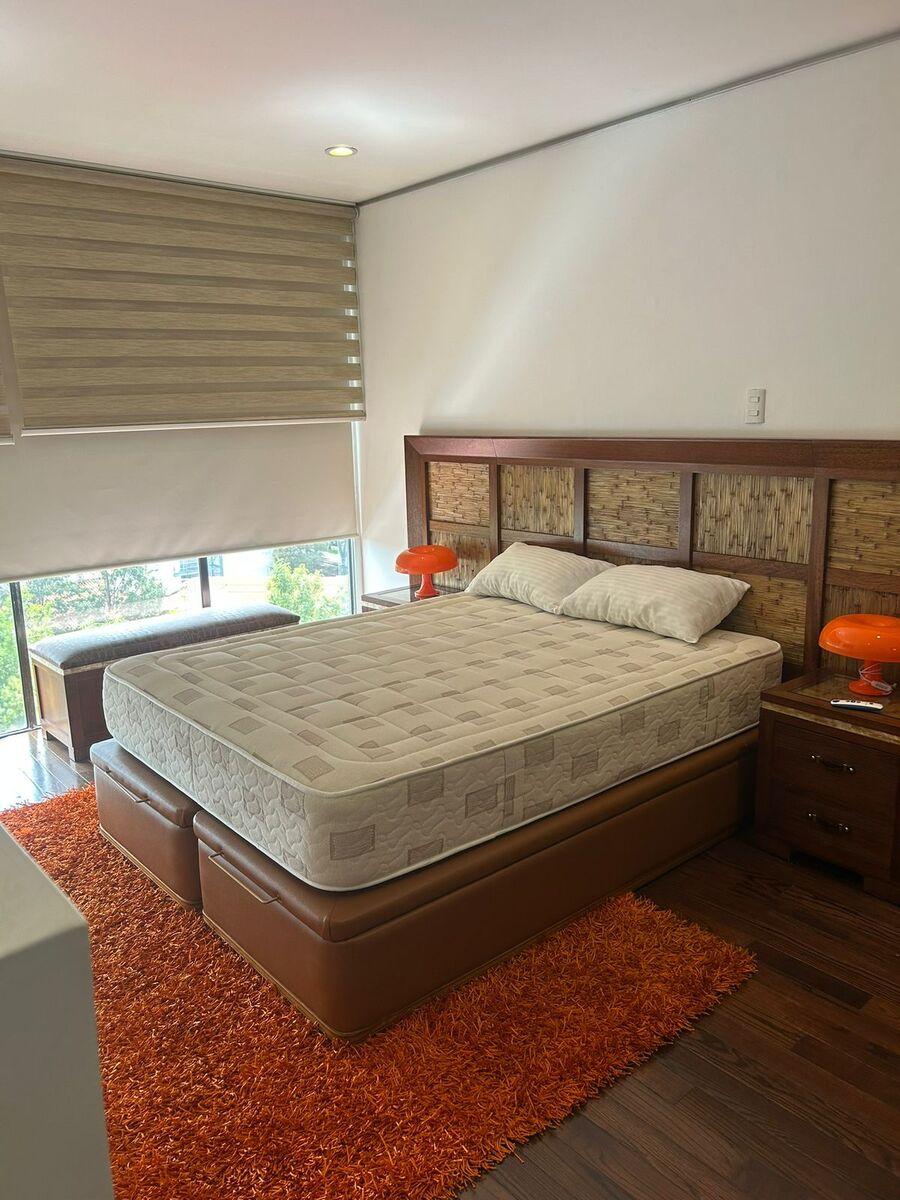 Su decoración interior destaca por el excelente gusto en cada detalle: iluminación natural en todos los espacios, puerta blindada, persianas, canceles de cristal templado, elevador, mobiliario de diseño y una acogedora cantina con barra ideal para disfrutar con amigos. Cuenta con 2 lugares de estacionamiento techados y seguridad 24 horas con circuito cerrado.