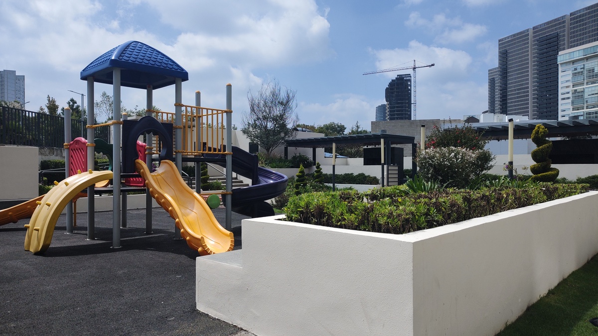 El desarrollo tiene vigilancia 24 horas, alberca techada, padel, gym, salón de spinning, ludoteca, salón de juegos, salón de fiestas, juegos infantiles, área de asadores, jardín para mascotas.