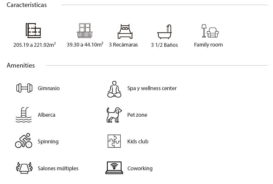 • Tipo 2: 205.19m2 + 39.30m2 de terrazas