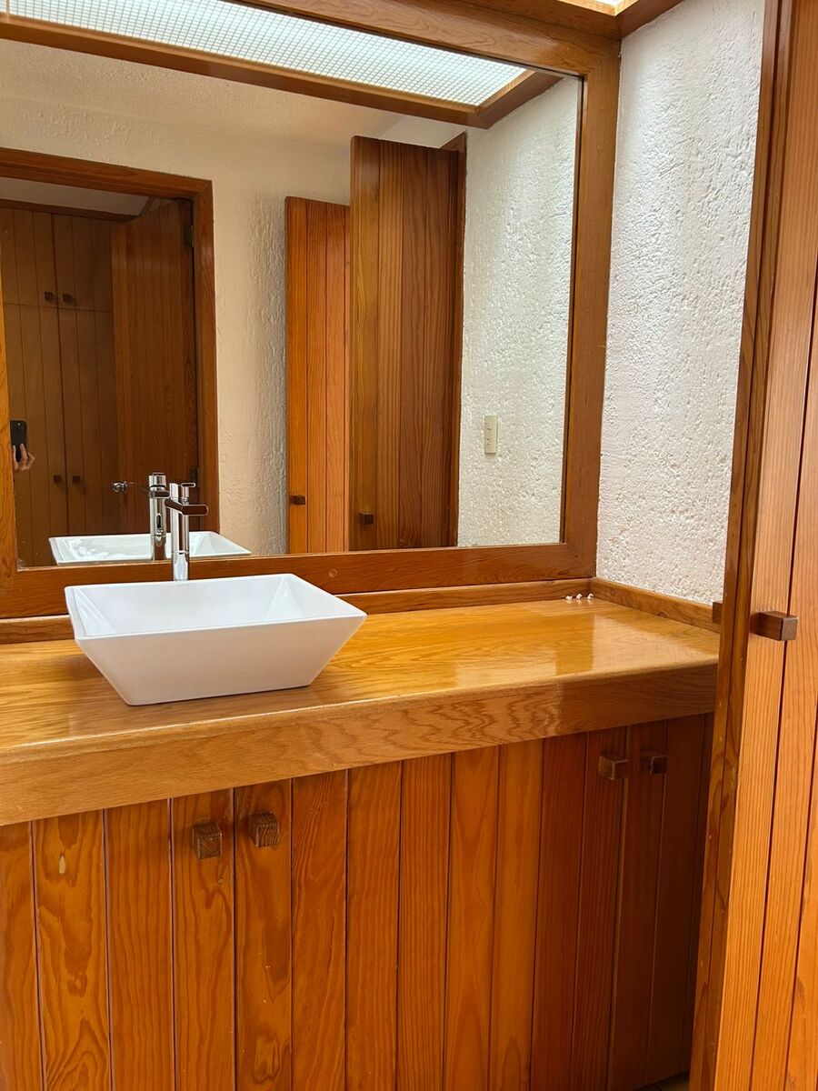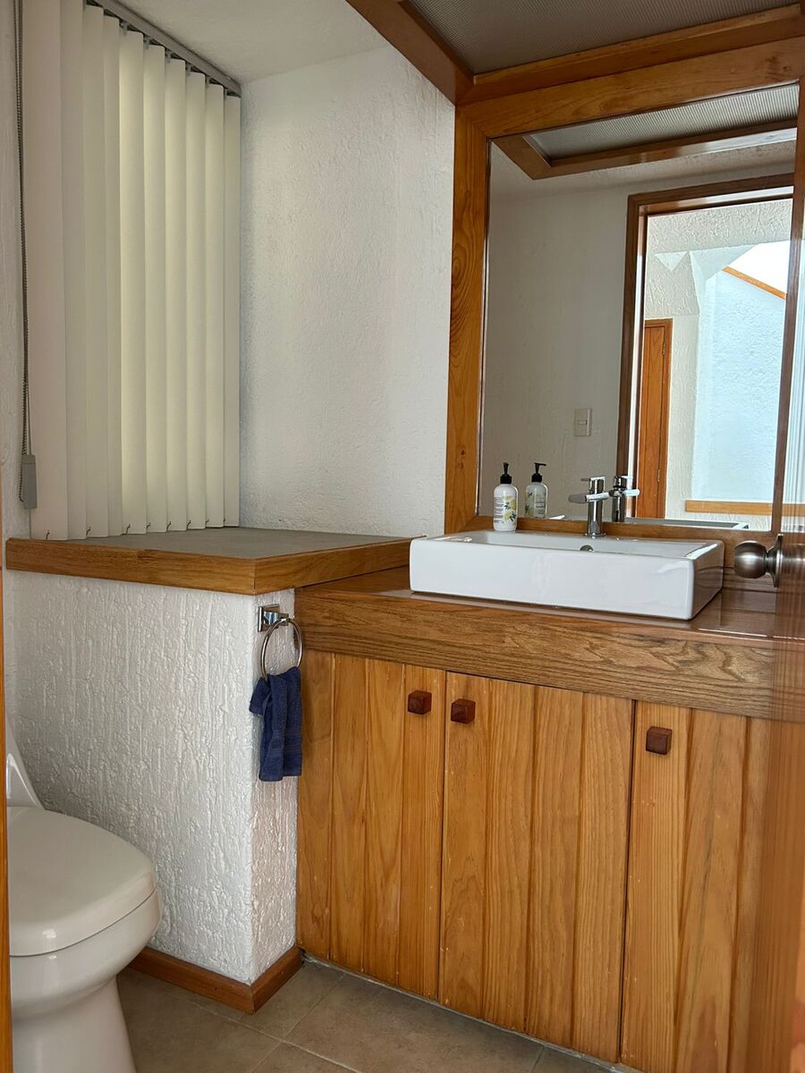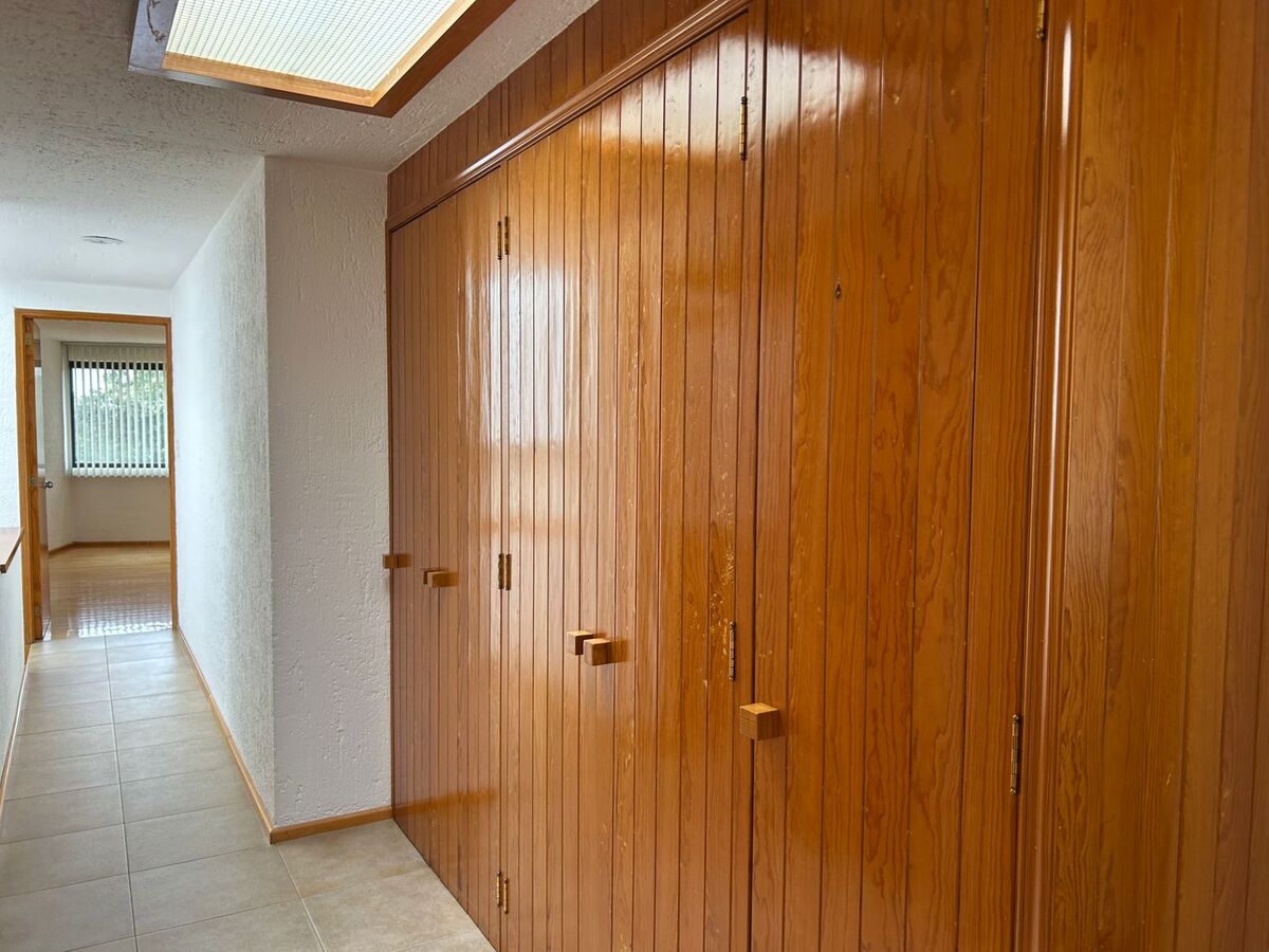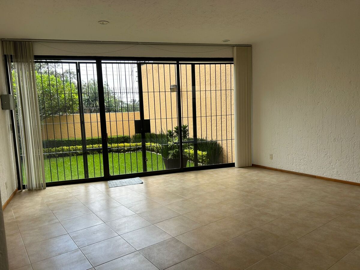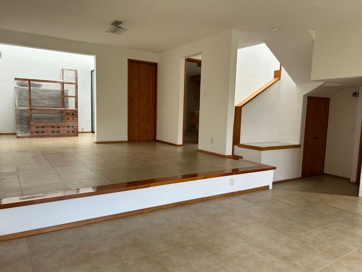 Cuenta con sala, comedor, área de bar, pequeño jardín, cuarto de tv, 3 Recamaras la principal con vestidor y baño, recamaras secundarias con closet y baño.