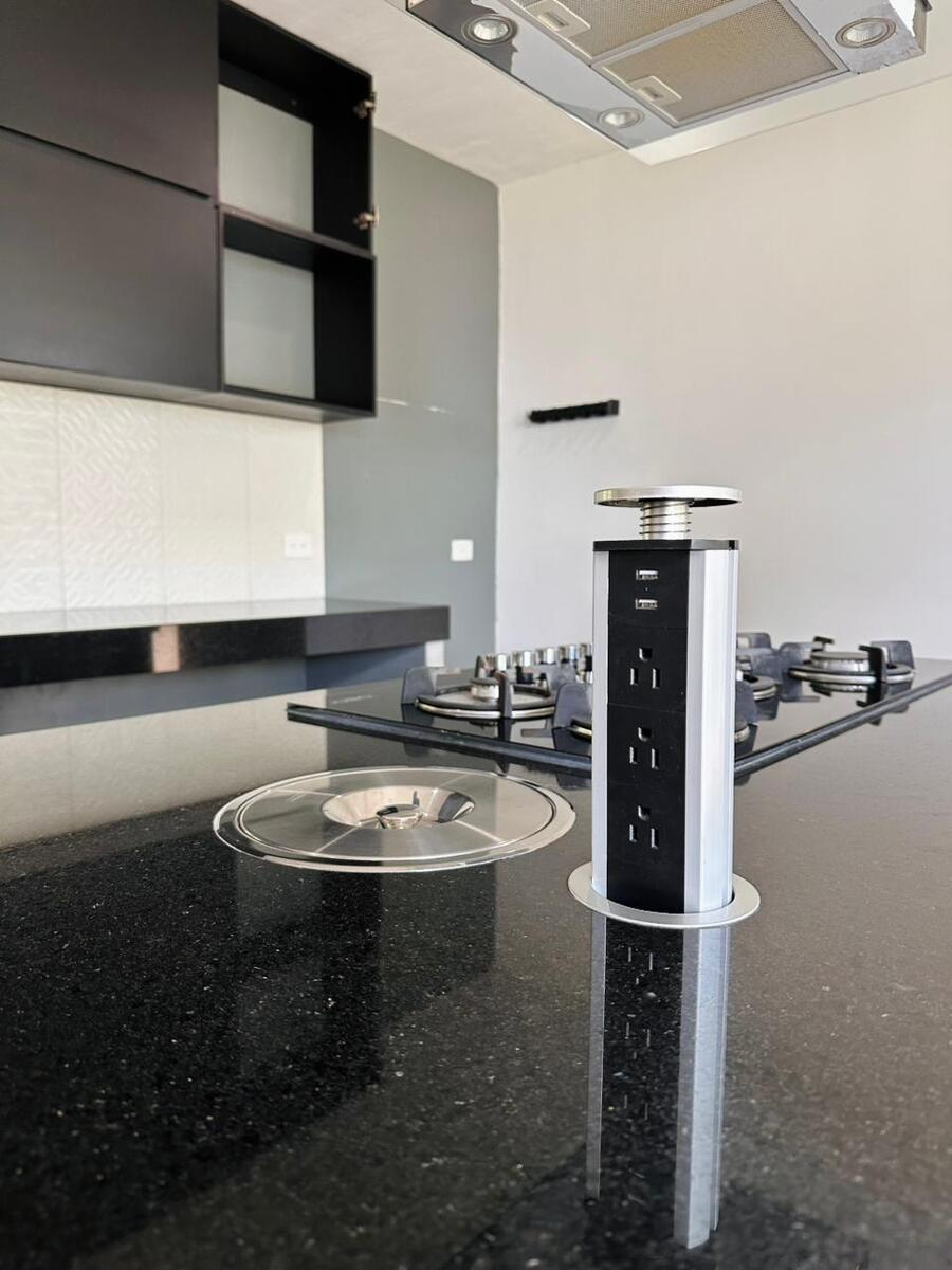 -Cocina con tarja, parilla de 5 hornillas, campana con filtro y cristal templado en isla.
