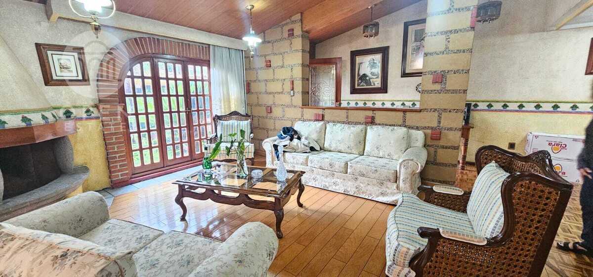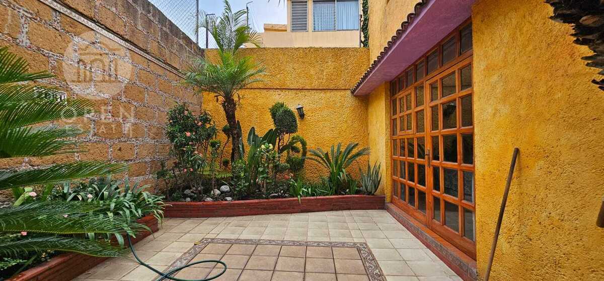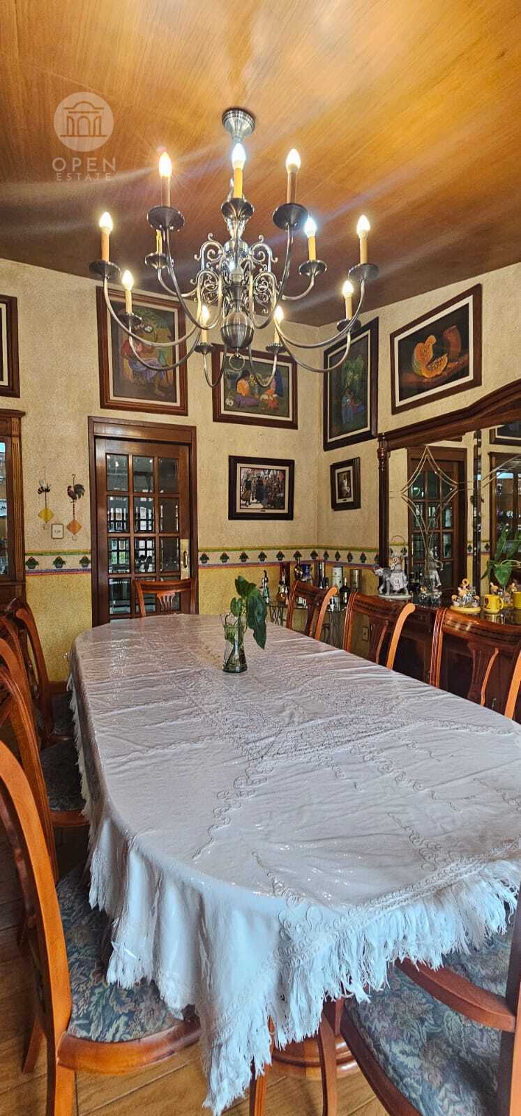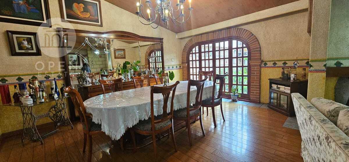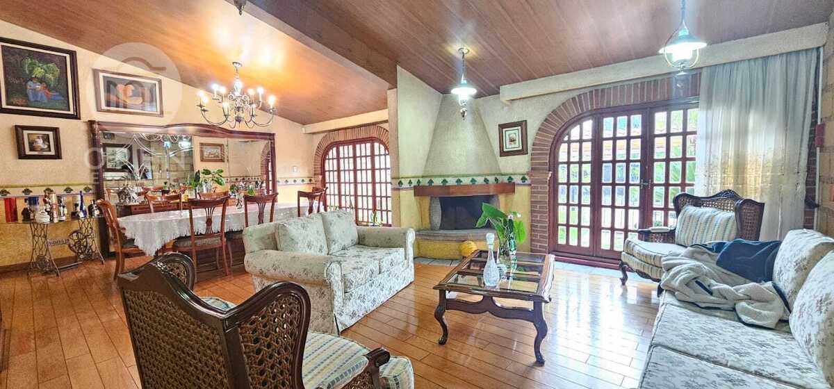 EL TECHO DE LA SALA Y COMEDOR ES MUY ALTO FORRADO DE MADERA CON VENTANAS AMPLIAS DESDE DONDE SE APRECIA SU HERMOSO JARDIN.