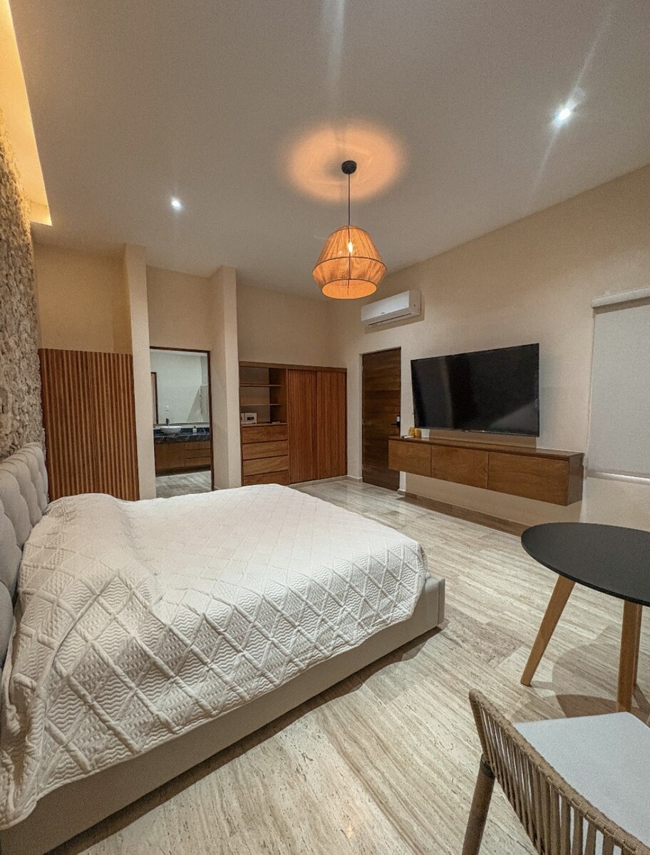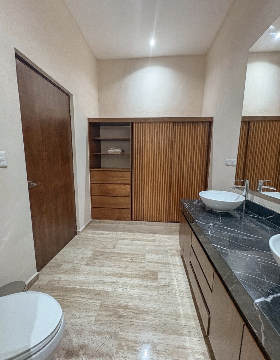 • 3 recamaras en planta baja cada uno con closets de madera de cedro y baño
