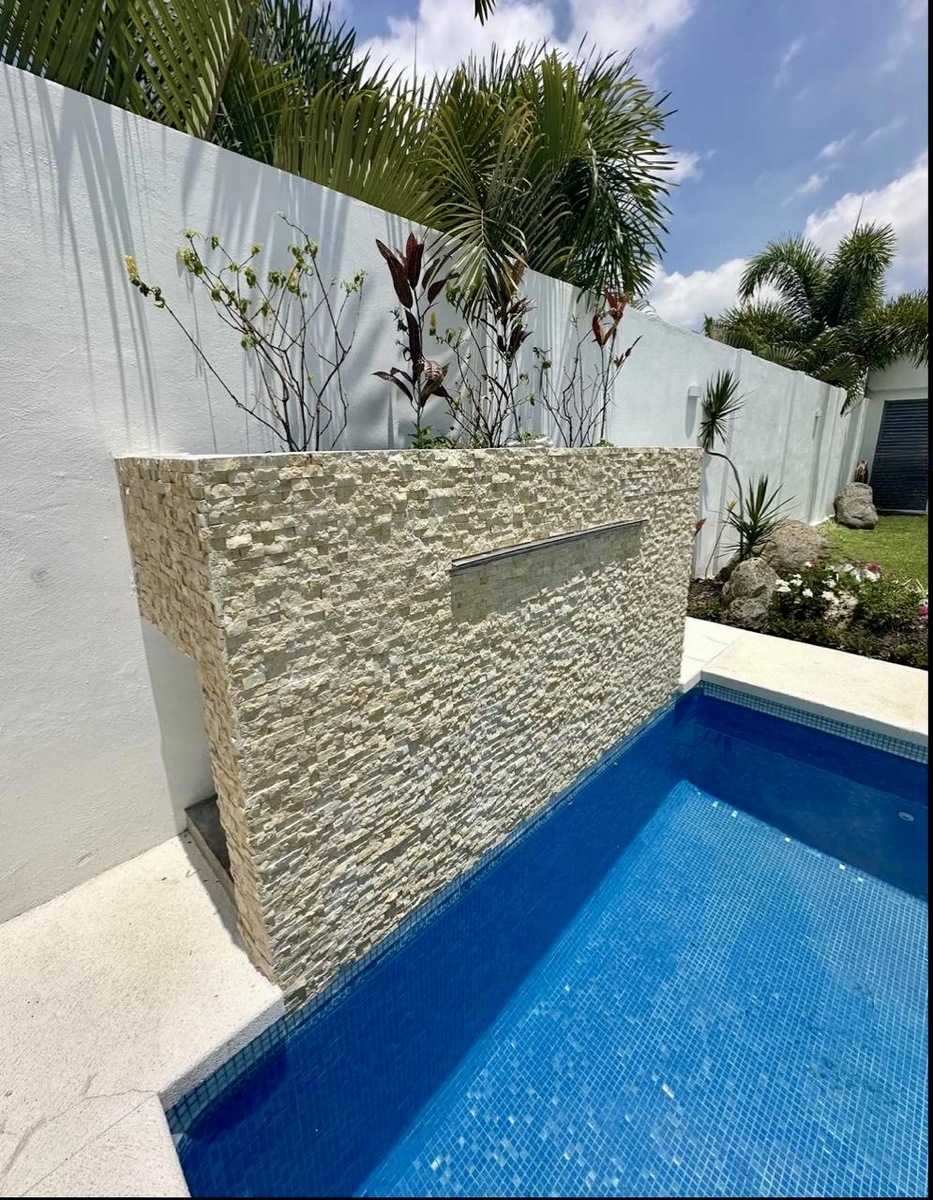 En el exterior, disfruta de una terraza techada ideal para reuniones, jardín privado y alberca con cascada con luces led que se controlan con wifi o control remoto. . 3 lugares de estacionamiento techados.
