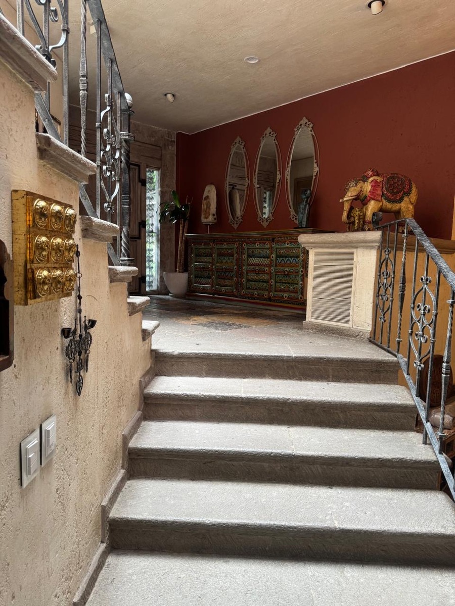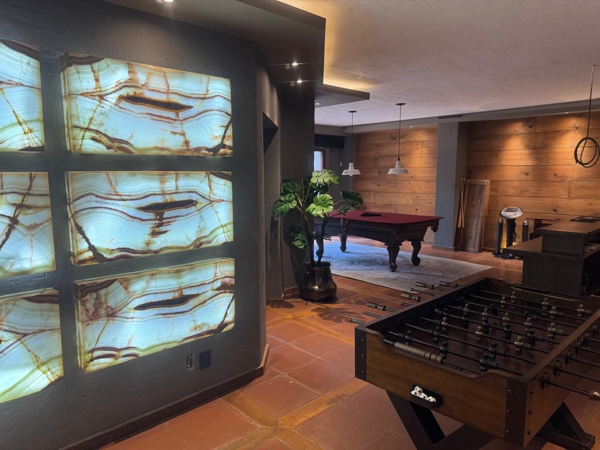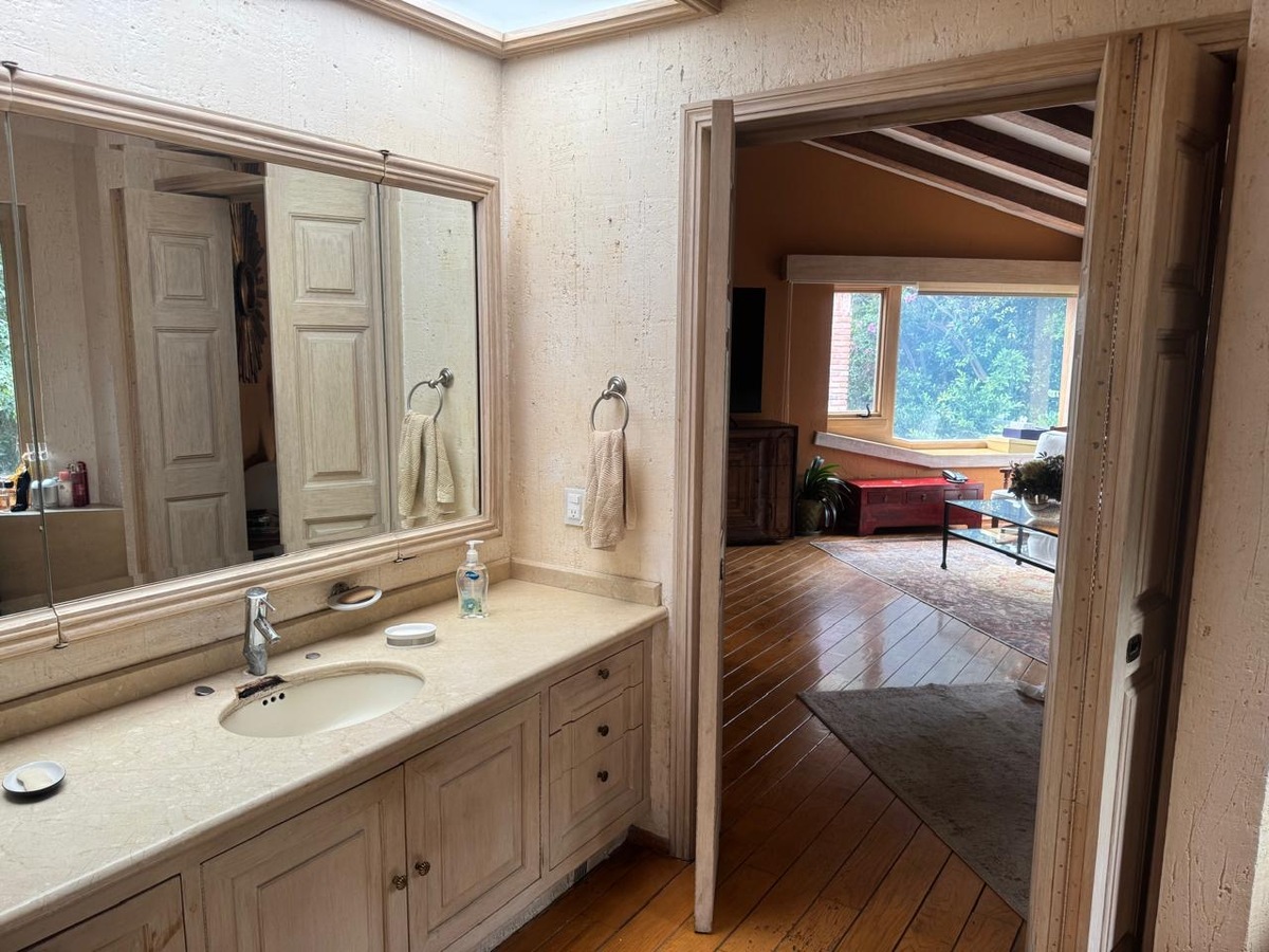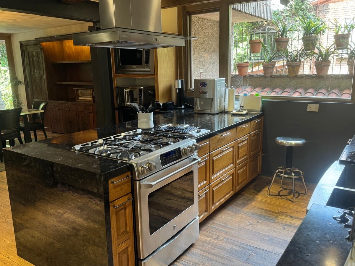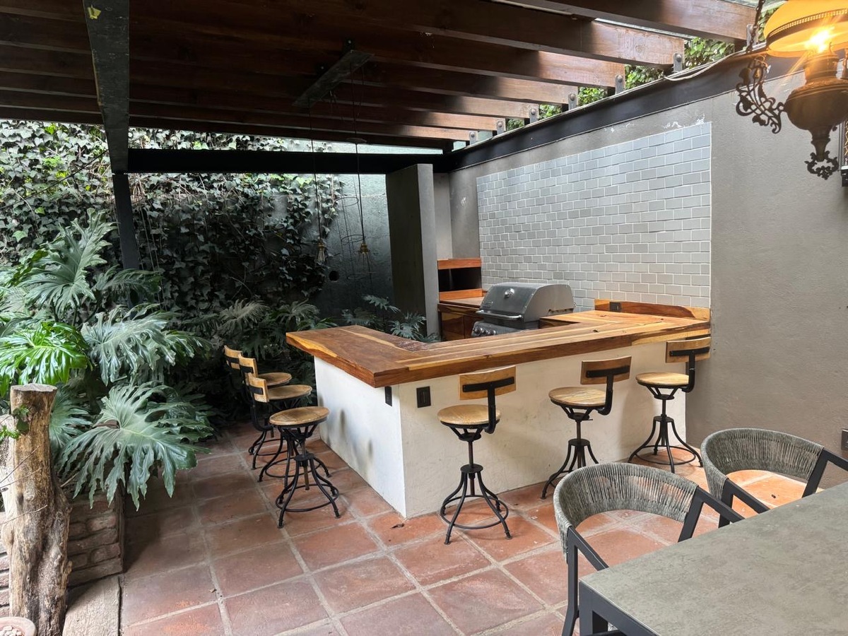 378 mts terreno, 427mts construcción, 3 recamaras, la principal con walking closet y baño completo, las otras dos con closet y comparten baño , cocina de gran tamaño con antecomedor, sala , comedor , cuarto de juegos enorme con baño , cava, jardín de gran tamaño , espacio en el jardín con bar y asador , 3 lugares de estacionamiento, vigilancia las 24 horas, la casa esta en tres niveles ,la parte de arriba recamaras , en medio sala comedor con gran vista arbolada y en la parte de abajo salón de fiestas con acceso directo al jardín