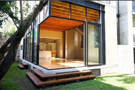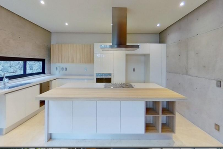 Construida con materiales de primera calidad, incluyendo muros de concreto aparente, pisos de mármol, madera de encino natural, y una sofisticada cocina italiana equipada con accesorios SMEG.