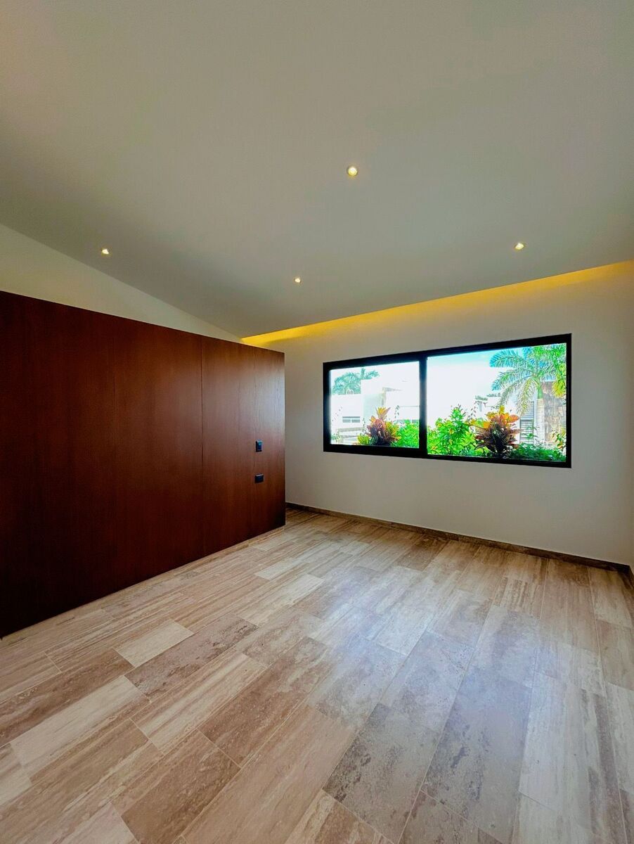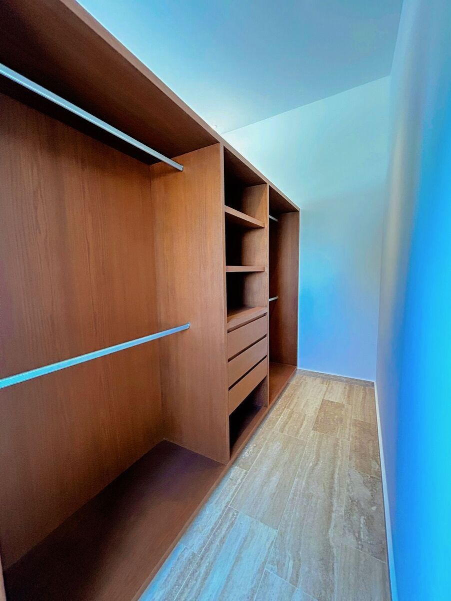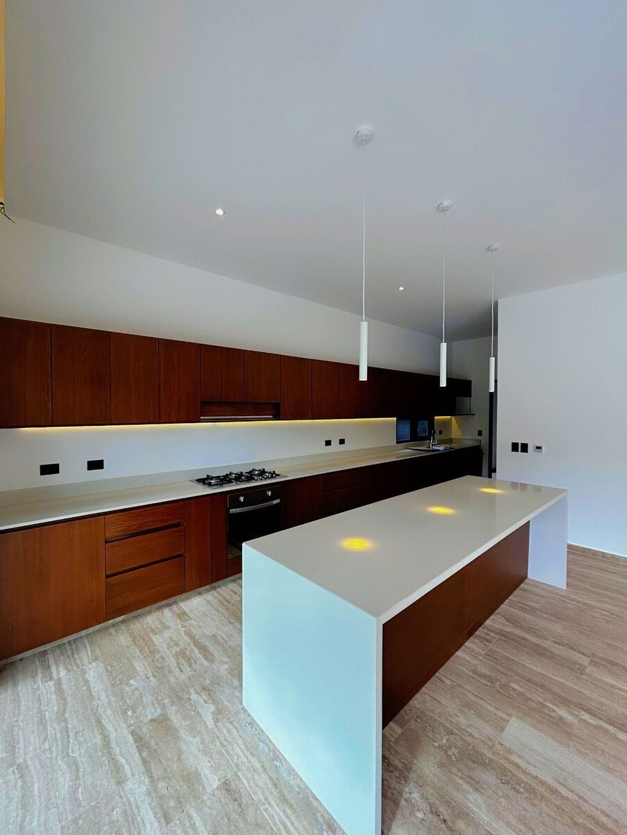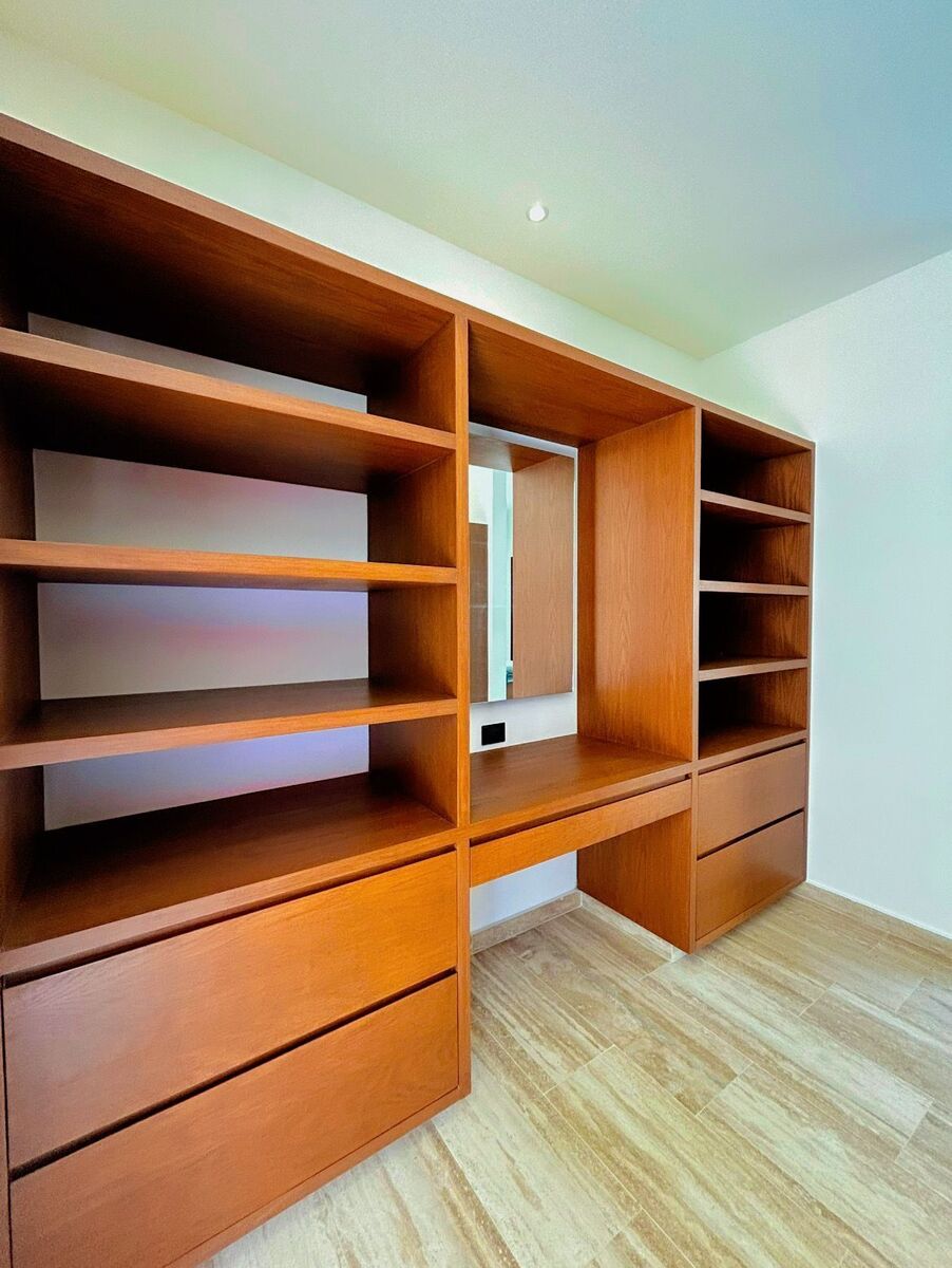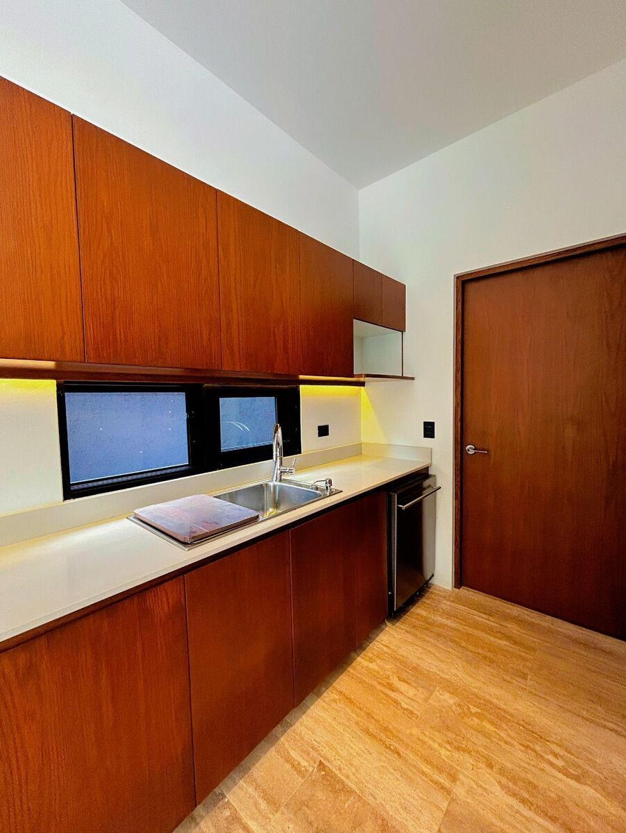 • Cocina con parrilla eléctrica y horno, campana, tarja doble, lava vajillas y carpintería en gavetas superiores e inferiores