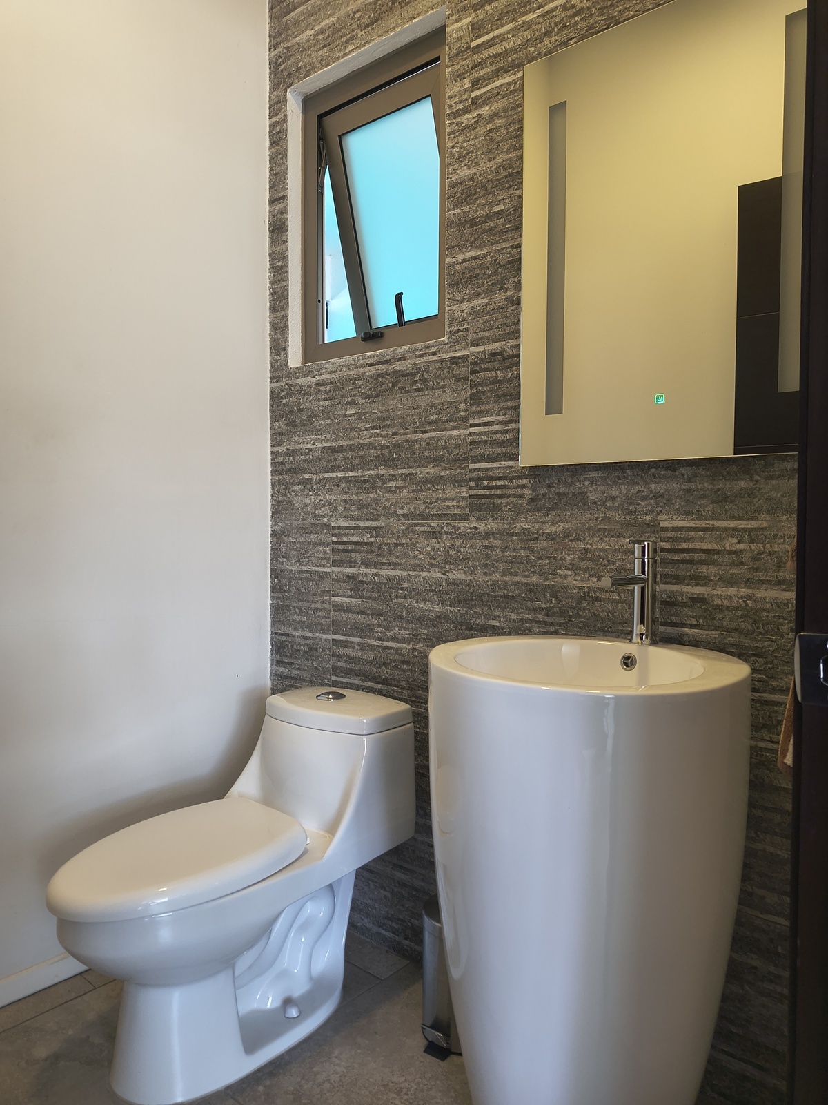 1/2 baño de visitas y terraza que da acceso al gran jardín.