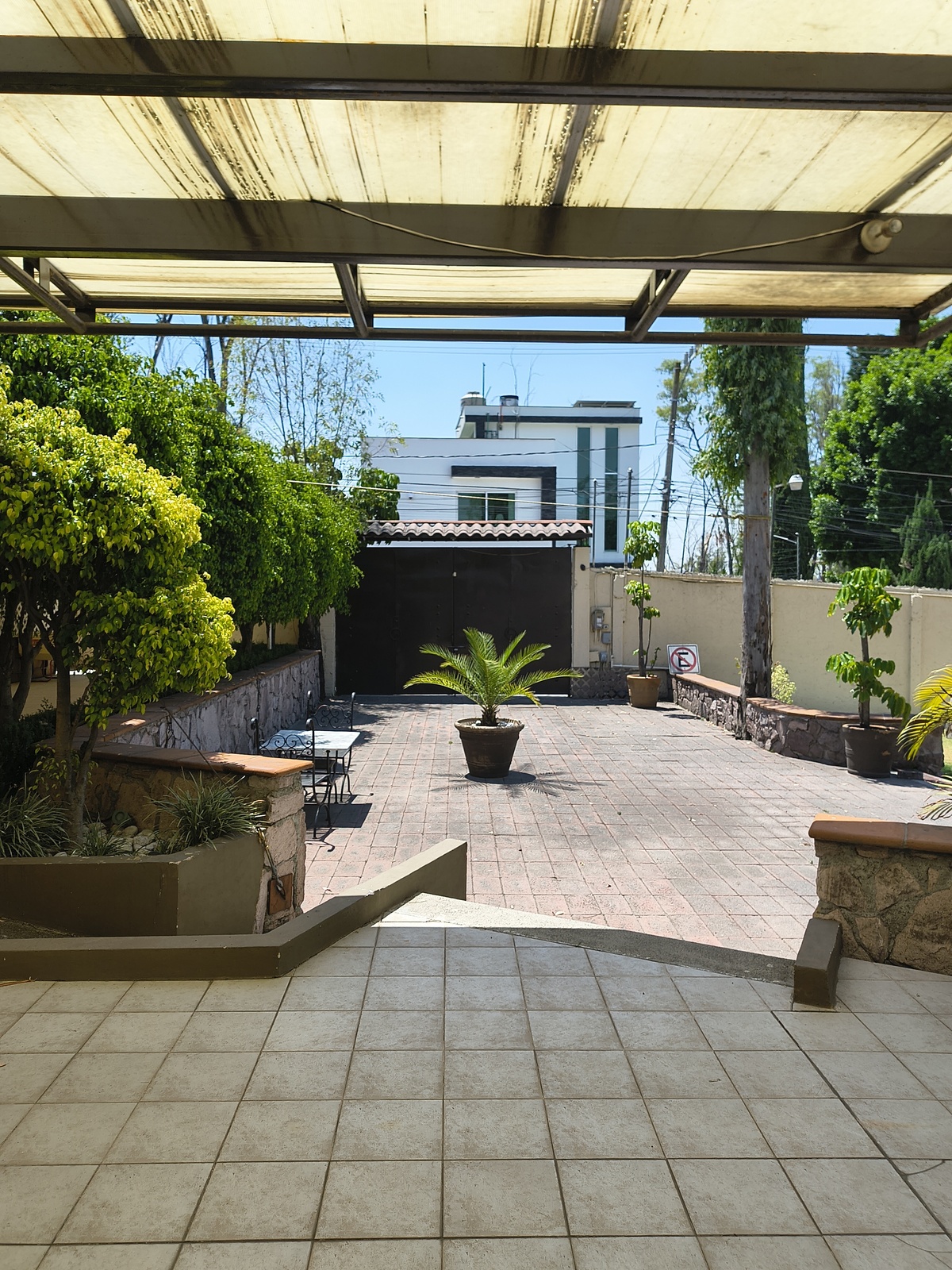 Se ubica en esquina, con entradas independientes a la casa, al salón de eventos y a la bodega.