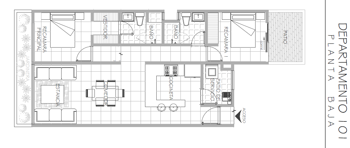 El Departamento 101 de tipologia exterior, tiene un Área interior de 83.17M2 + Área de Balcón de 6.36M2 = Área Total de 89.53M2.