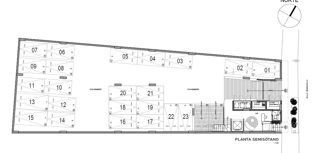 El desarrollo cuenta con 25 departamentos distribuidos en 5 niveles (PB + 4).