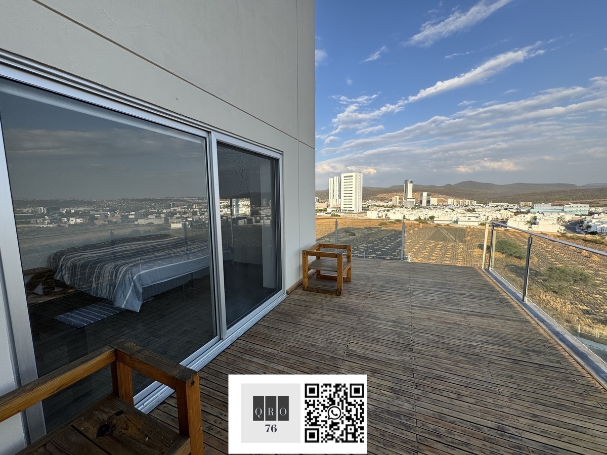 Invierte en un departamento con una de las terrazas más amplias de Biosfera Towers, con vista al amanecer sobre Querétaro y al Cerro Colorado por la tarde.