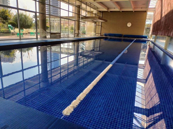 Alberca semi olímpica techada, GYM, vestidores, jacuzzi, Sauna