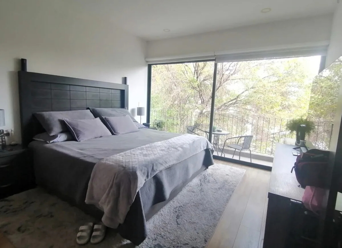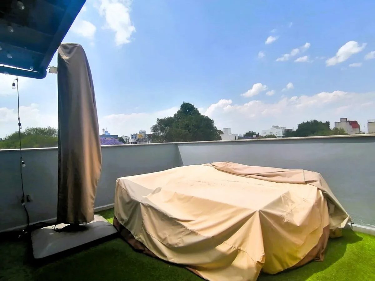 El departamento está ubicado en un cuarto nivel y cuenta con excelente iluminación natural, balcón en recámara principal y un amplio Roof garden privado.