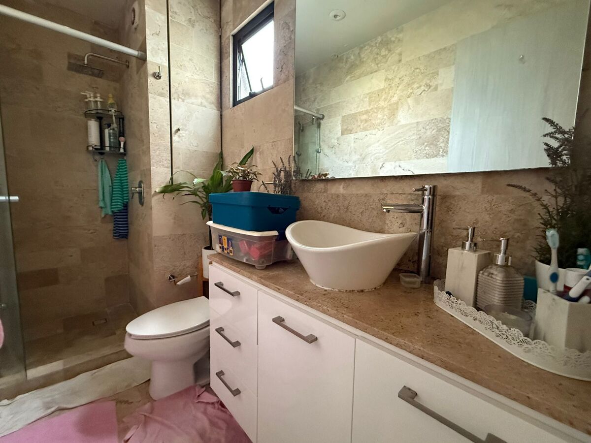 Pisos de ingeniería, cocina con placa de granito, baños con mármol y cancel de cristal templado.