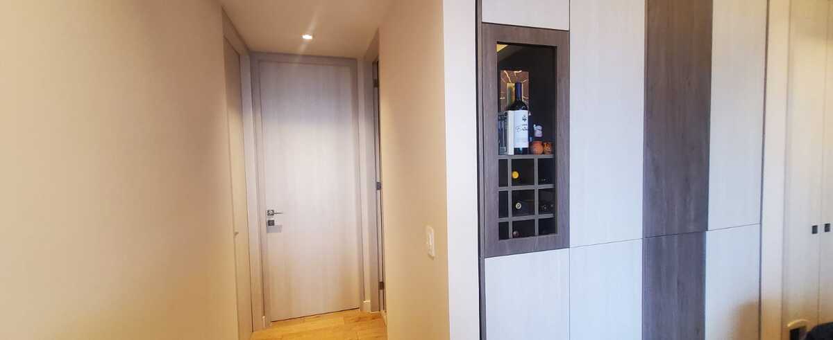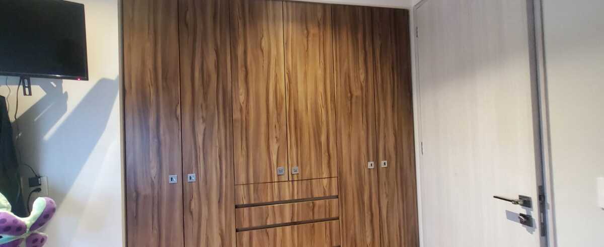 Cuenta con muy buena iluminacion y ventilacion. Sus muebles integrados de buena capacidad, mantienen un area de almacenaje oculto en la terminacion de madera clara de sus paredes.
