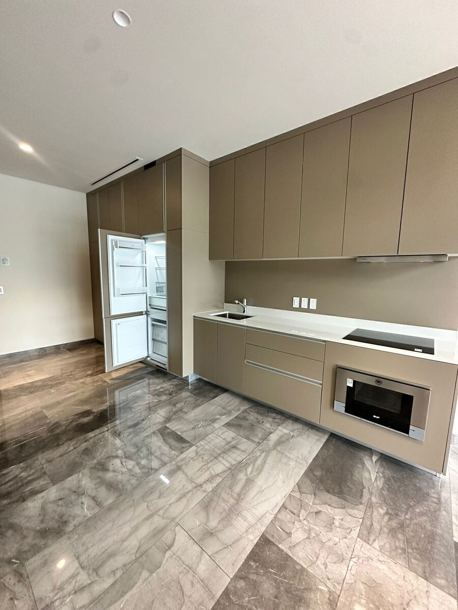 Cocina (estufa eléctrica, campana, horno y refrigerador), canceles, clima central y boiler. Espacio para centro de lavado. Carpintería empotrada con área de escritorio, mueble de sala y clósets.