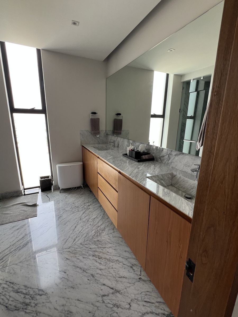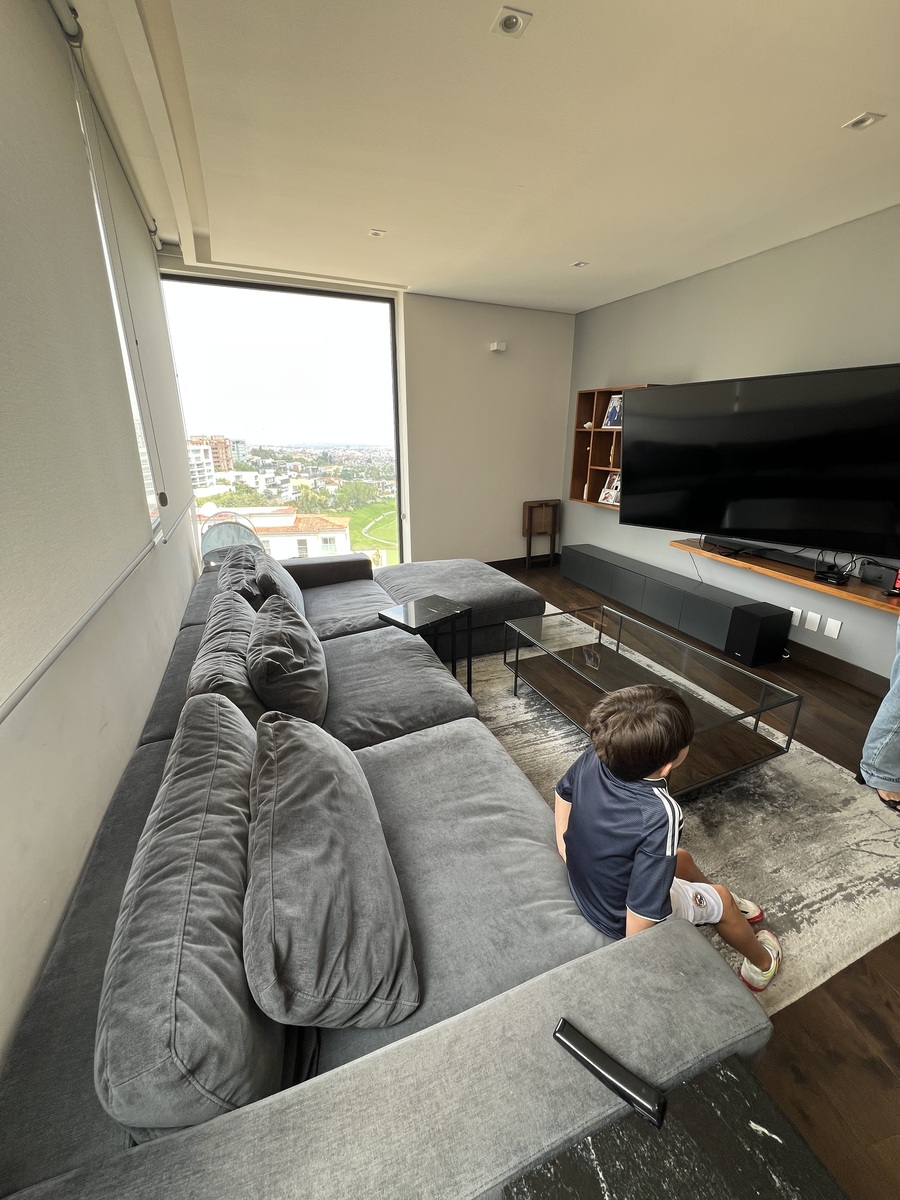 Distribución sala-comedor con una gran terraza, medio baño de visitas, cocina integral, área de lavado, clóset de blancos, cuarto de servicio con baño, sala de tv, 3 recamaras con vestidor y baño cada una.