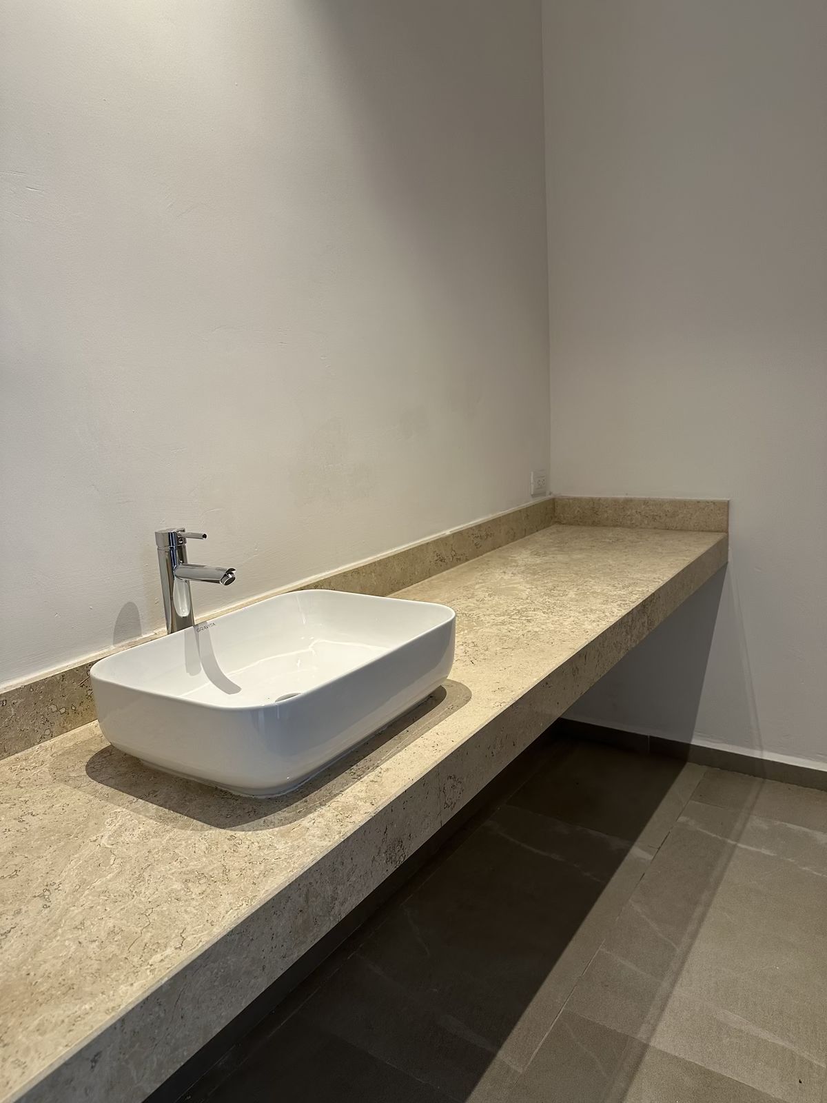 -Medio baño para visitas con meseta de Marmol e inodoro de una pieza