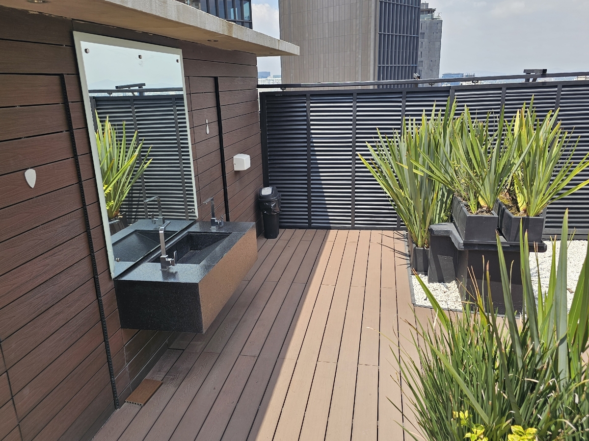 Áreas comunes: Roof garden con sala, mesas y azador.