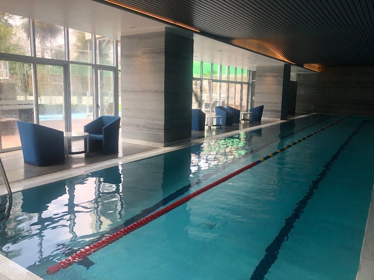 Albercas: Panorámica en piso 18, semiolímpica, recreativas y chapoteaderos.