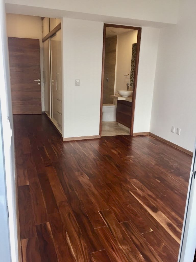 El departamento cuenta con tres habitaciones diseñadas para tu confort: la recámara principal es un santuario espacioso donde cabe una cama king size y dos mesitas de noche, complementada con un walking clóset y baño privado. Las otras dos habitaciones junior disponen de clósets de piso a techo y comparten un baño completo.