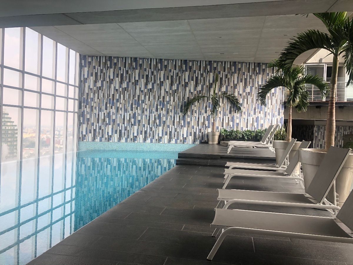 Relajación y Bienestar: Alberca en el piso 18 con dos jacuzzis, vapor y sauna para hombres y mujeres, salones de yoga y danza, estética.