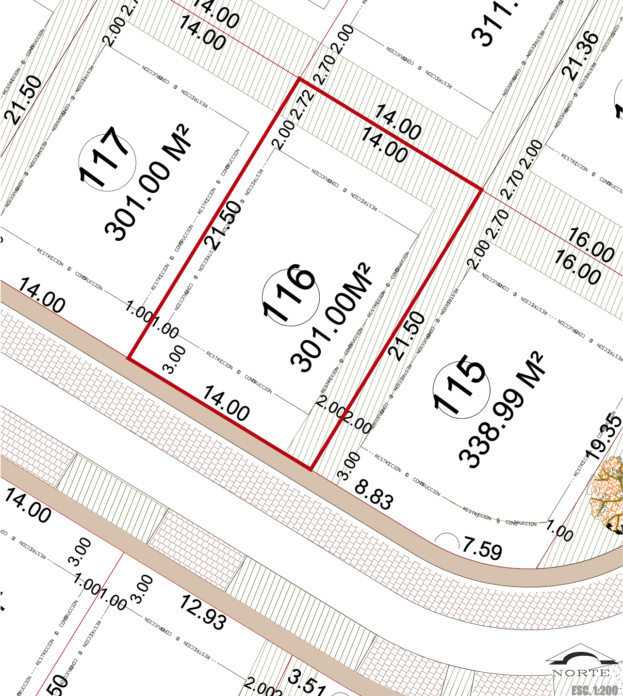 - Frente 14.0m