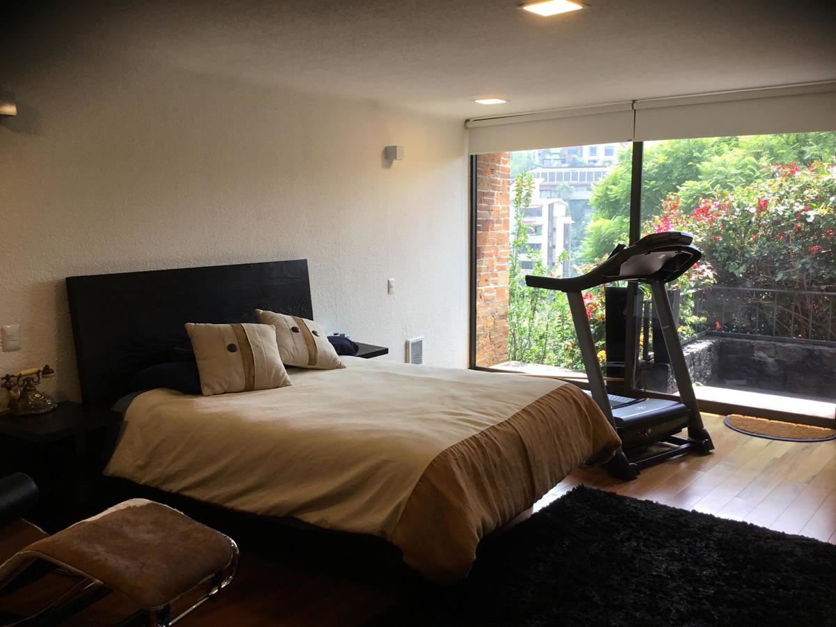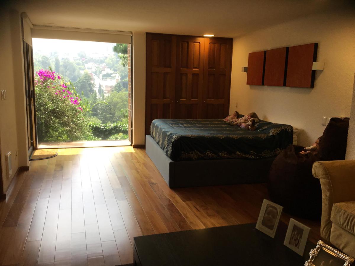 Con lindos 3 jardínes y cuenta con casa de huéspedes. Casa con Cuatro amplias Recámaras cada una con su baño y vestidor. 3 de las Recamaras tienen salida al jardín y la otra tiene una terraza con vista al jardín. Sala y desayunador tienen terraza con vista al jardín y cuenta con doble altura. Tiene cocina grande con despensas, cuarto de lavado y 2 cuartos de servicio. Estacionamiento para 5 autos. Y una bodega bastante grande.