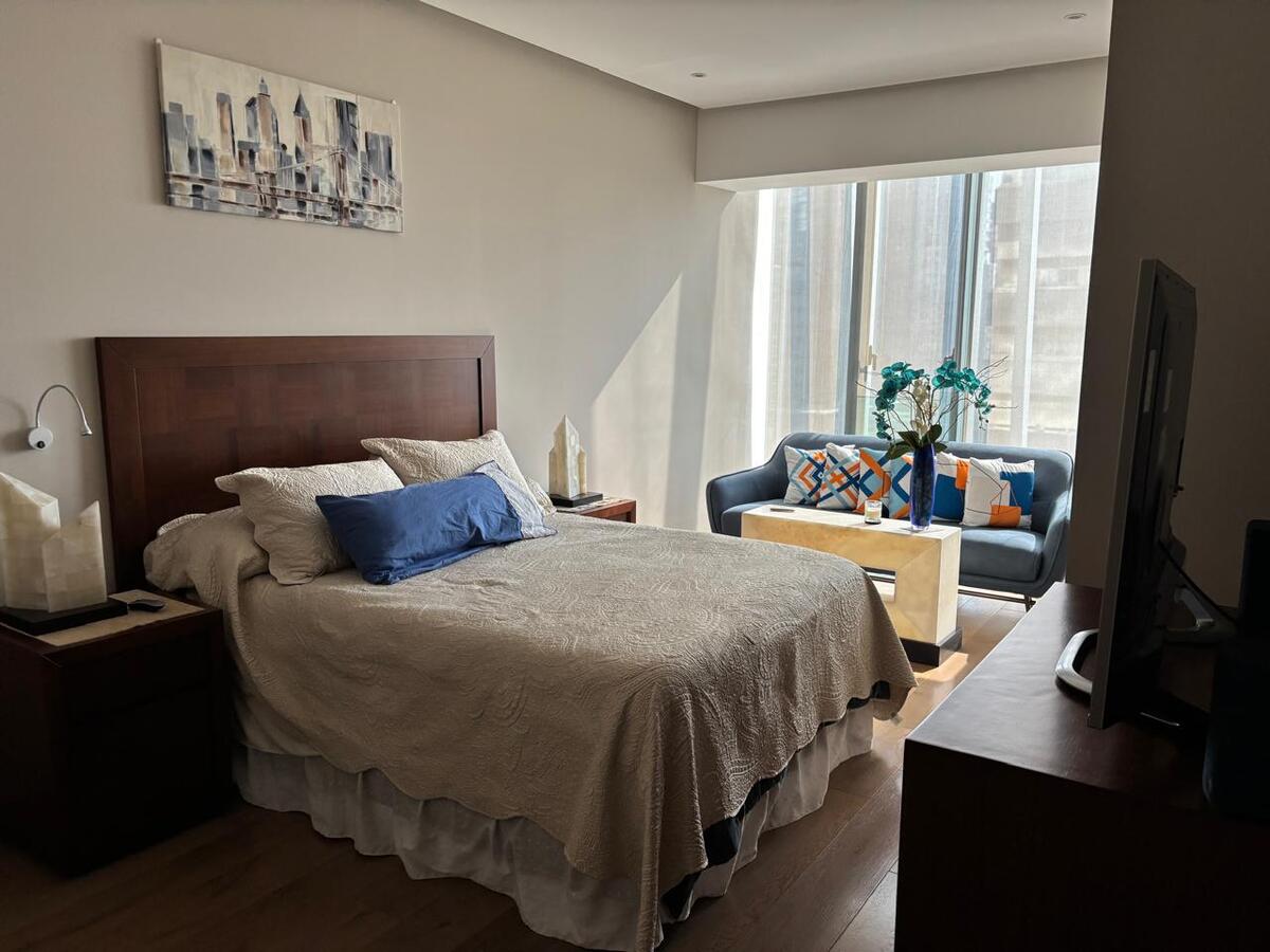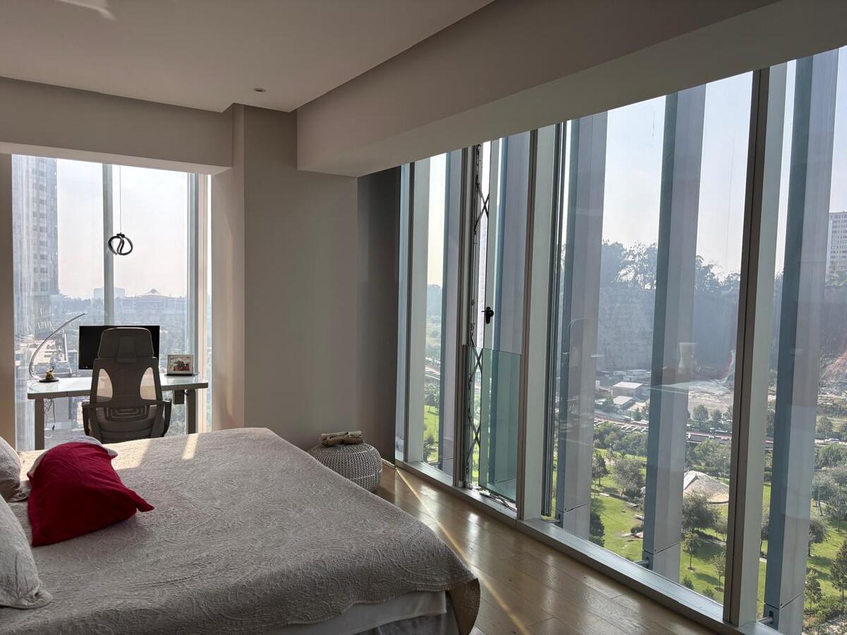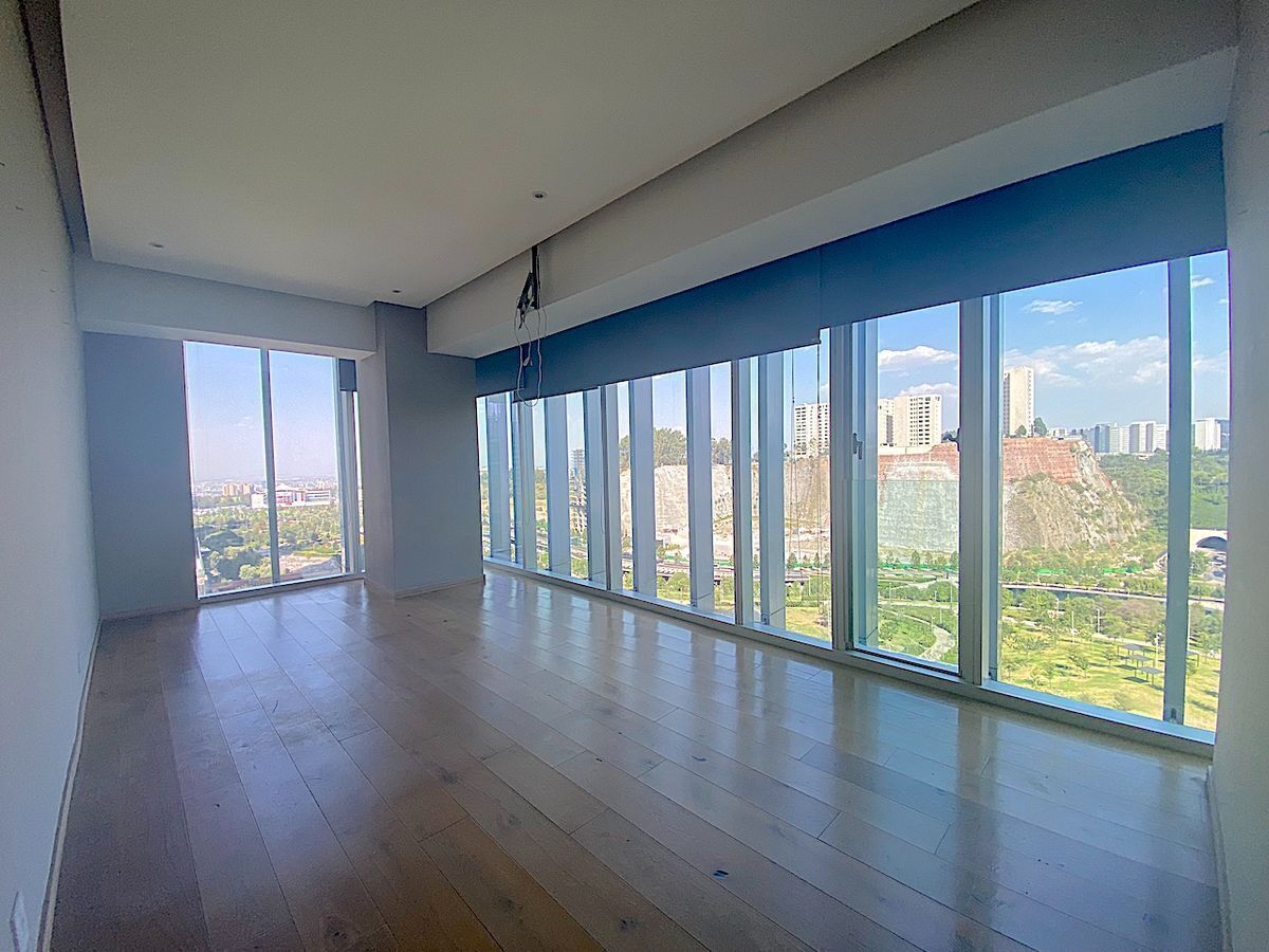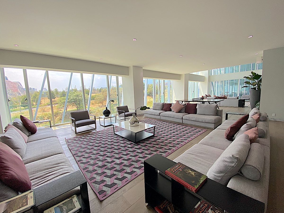 Vanguardista depto. de 200 mts en la emblemática torre PARADOX, ubicada sobre Av Santa Fe. El depto goza de estupenda vista, cuenta con ventanales acústicos y térmicos de piso a techo, calefacción y aire acondicionado, amplia sala-comedor, 3 recamaras cada una con baño, medio baño para visitas, moderna cocina integral, area de lavado y cuarto de servicio con baño completo, 2 cajones de estacionamiento.