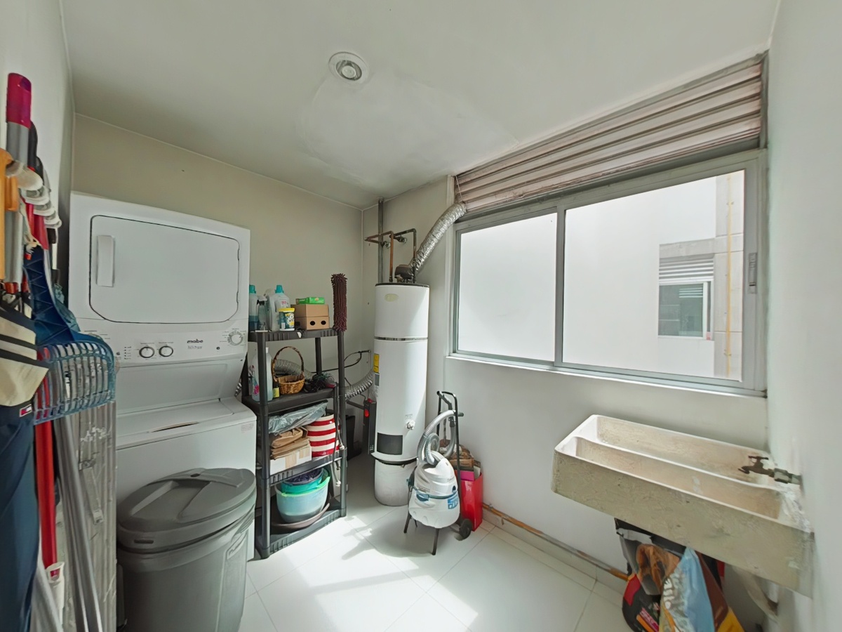 Gran cocina equipada con cuarto de lavado con ventilación natural