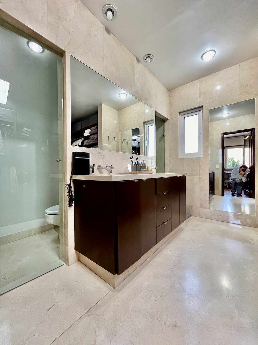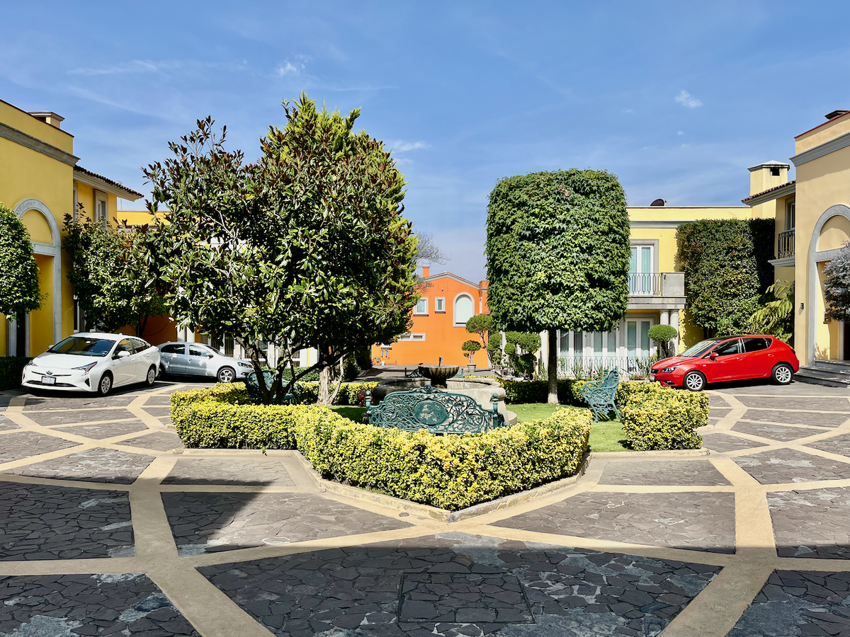 Encantadora residencia totalmente remodelada en condominio horizontal de solamente 13 casas, con un hermoso jardín con fuente al centro de las casas. Estratégicamente ubicada a solo 700 metros de Santa Fe y a pocos kilómetros del impresionante Desierto de los Leones. Excelentes accesos y sobre todo, muy bonito conjunto para vivir con muy buena vigilancia. ¡Esta espaciosa propiedad lo tiene todo!, construida sobre 496 metros cuadrados de terreno y 410 metros de construcción ofrece un total de 4 recámaras, 3 baños completos y 2 medios baños; con un amplio y luminoso diseño que incluye una generosa sala, comedor, acogedora sala de estar, pequeña oficina, jardín, amplia terraza, cocina cerrada, dos amplia alacenas, antecomedor, cuarto de servicio, área de lavado, bodegas, techos altos. ¡Una oportunidad única para una vida plena y confortable a un paso del bosque y a 5 minutos de Santa Fe!