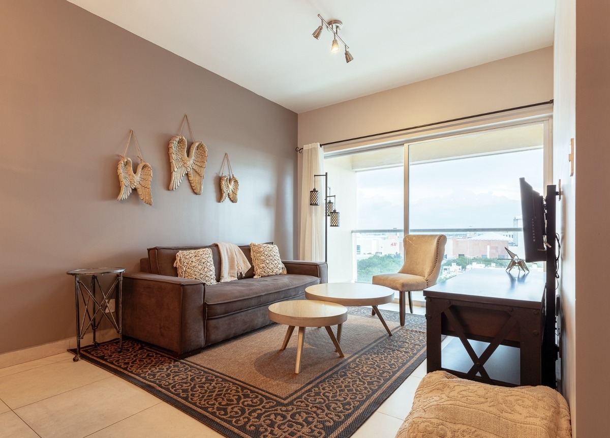 Acceso directo al centro comercial The Harbor Mérida, con tiendas de lujo, restaurantes y entretenimiento