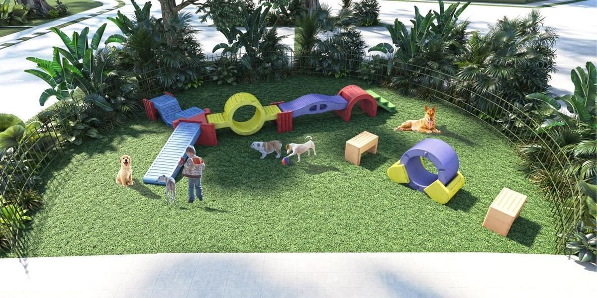 mascotas con juegos, caseta de vigilancia con doble acceso, baños de hombres y mujeres.