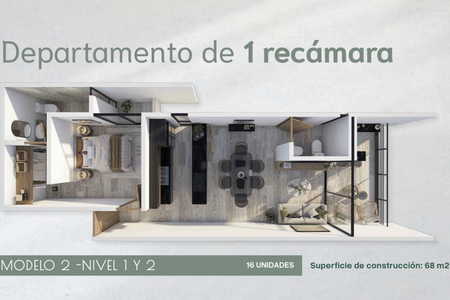 DEPARTAMENTO DE 1 RECAMARA + FLEX EN TEMOZON NORTE EN PREVENTA