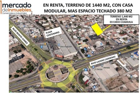 RENTA DE TERRENO DE 1,440 M2, EX EJIDO COAHUILA. INCLUYE CASA MODULAR / OFICINA