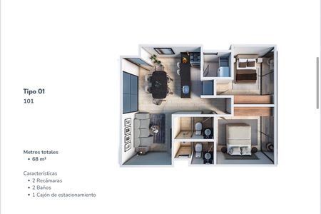 Departamento Preventa Nápoles 68.20 m2 - Depto 304