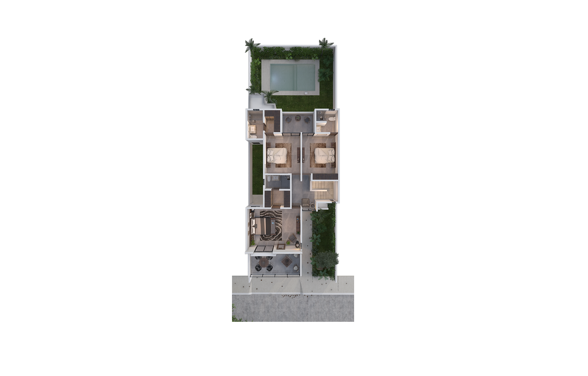 • 2 recámaras secundarias con closet, balcón y baño completo cada una