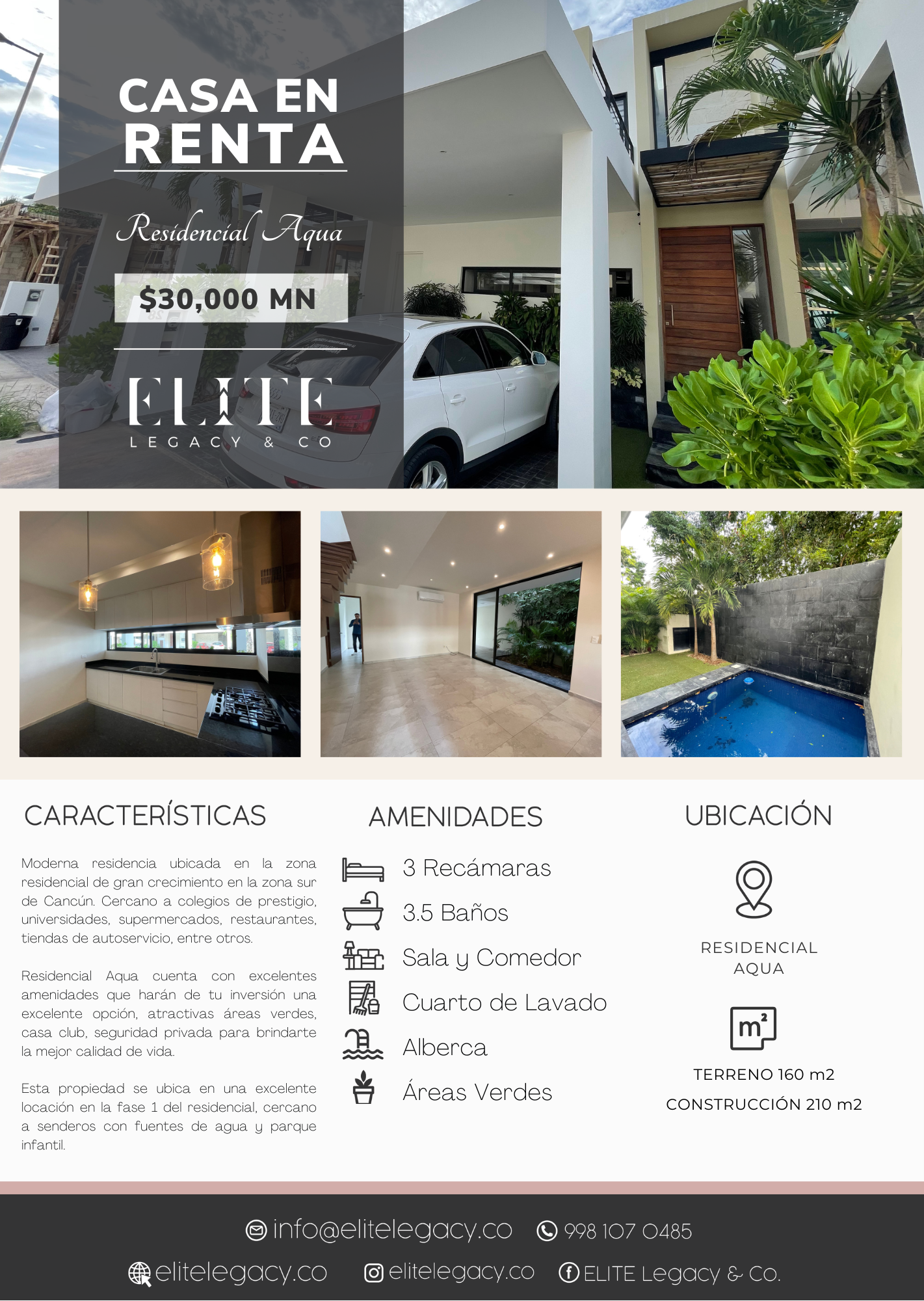 Residência moderna localizada na área residencial de rápido crescimento na zona sul de Cancún. Perto de escolas de prestígio, universidades, supermercados, restaurantes, lojas de conveniência, entre outros. O Residencial Aqua possui excelentes amenidades que farão do seu investimento uma excelente opção, áreas verdes atraentes, casa de clube, segurança privada para lhe proporcionar a melhor qualidade de vida.