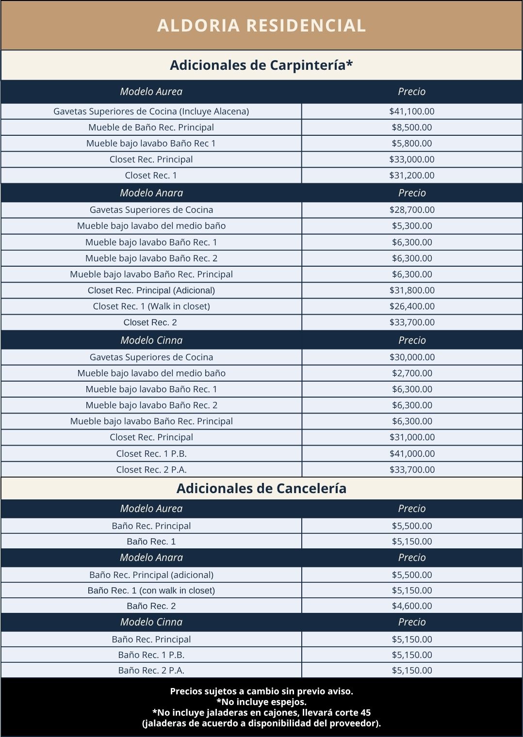 -Precios y disponibilidad sujetos a cambio sin previo aviso.