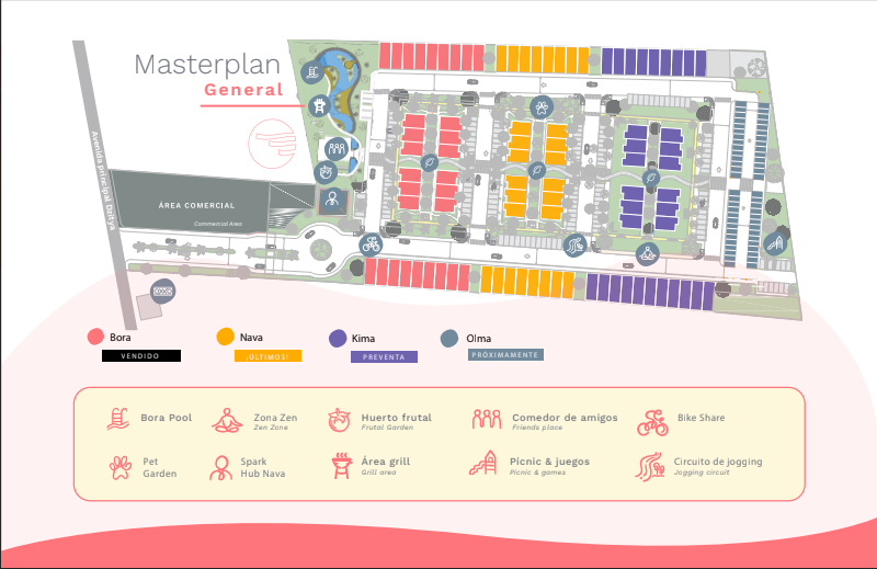É um corredor residencial projetado especialmente para inspirá-lo e ajudá-lo a viver em um ambiente cheio de emoções vibrantes, com o objetivo de alcançar a plenitude de viver ao norte de Mérida, composto por 18 Townhouses e 36 Apartamentos.