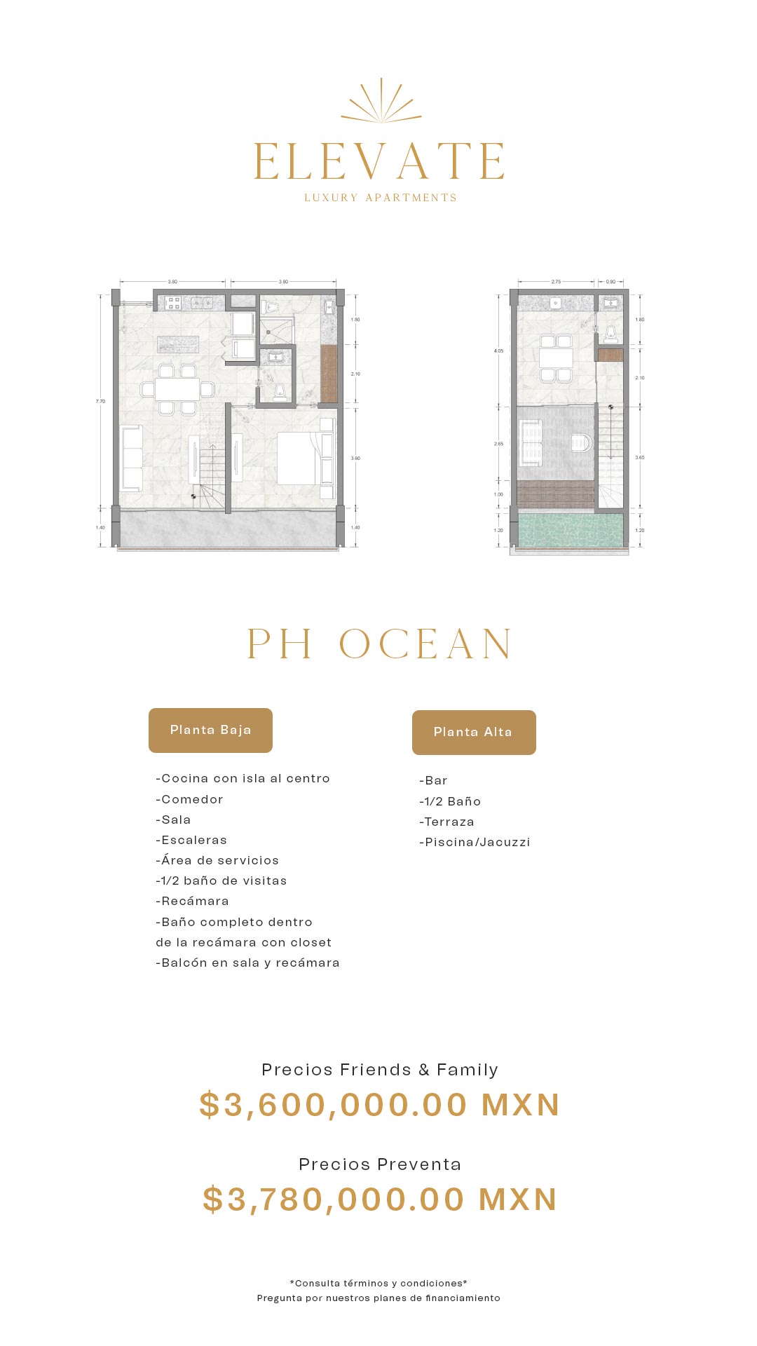 41 apartamentos distribuídos em um edifício de luxo de 4 andares na melhor localização da cidade de Mérida, com um design arquitetônico representando o luxo de Miami através de sua estrutura e detalhes de design de interiores.