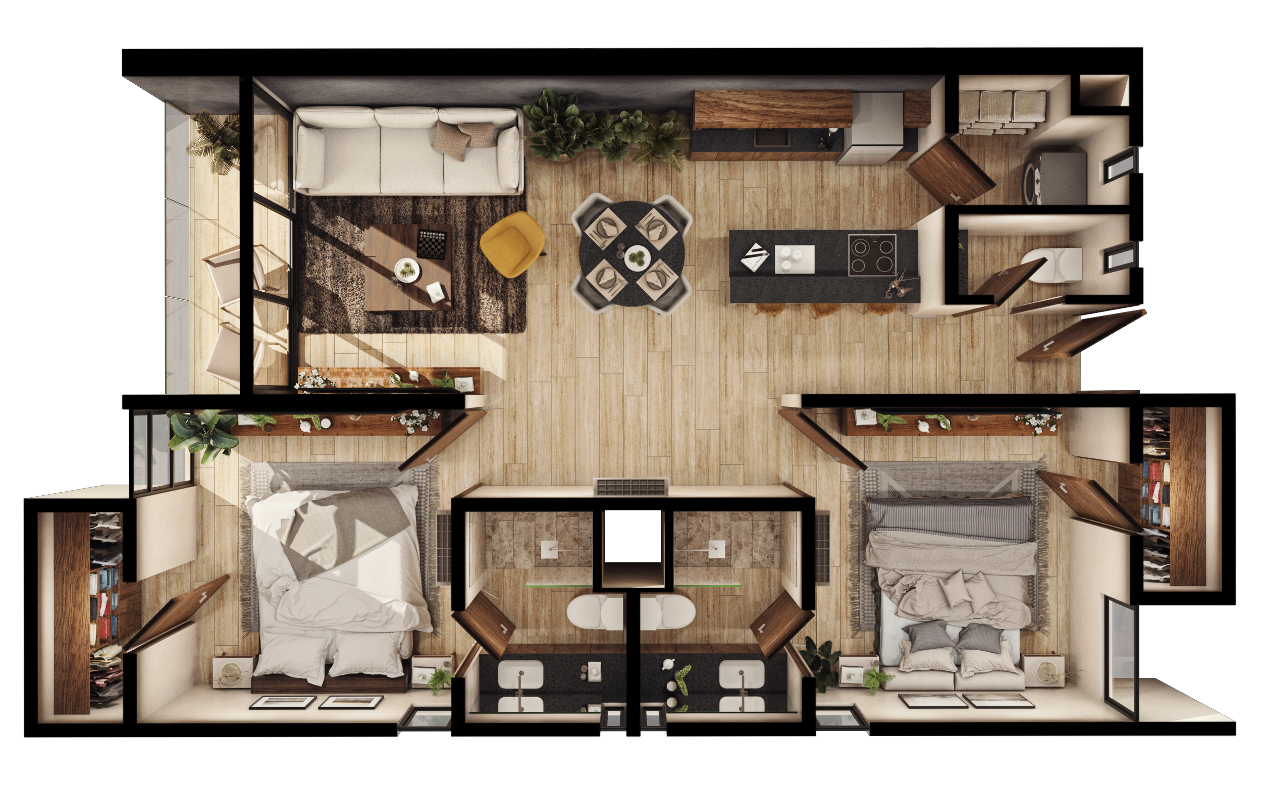 Modelo Double, Nível 4, Apartamento 402, Orientação Traseira