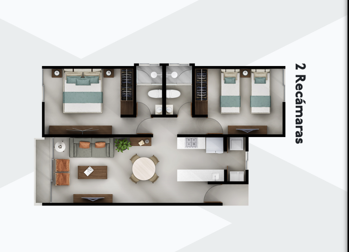 * Este é um render que pode variar em relação ao resultado real.*Departamento de dos recámaras y dos baños completos dentro de un exclusivo complejo de 40 departamentos ubicado al Norte de la ciudad de Mérida. En el 4 piso.