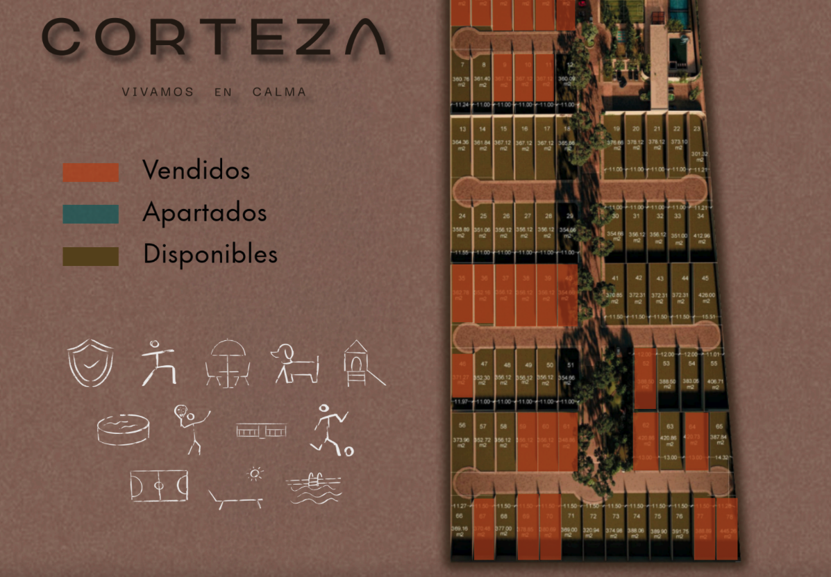 Corteza Temozón é um conjunto de 78 lotes residenciais localizado em Temozón Norte, o loteamento com maior valorização atualmente na cidade de Mérida.