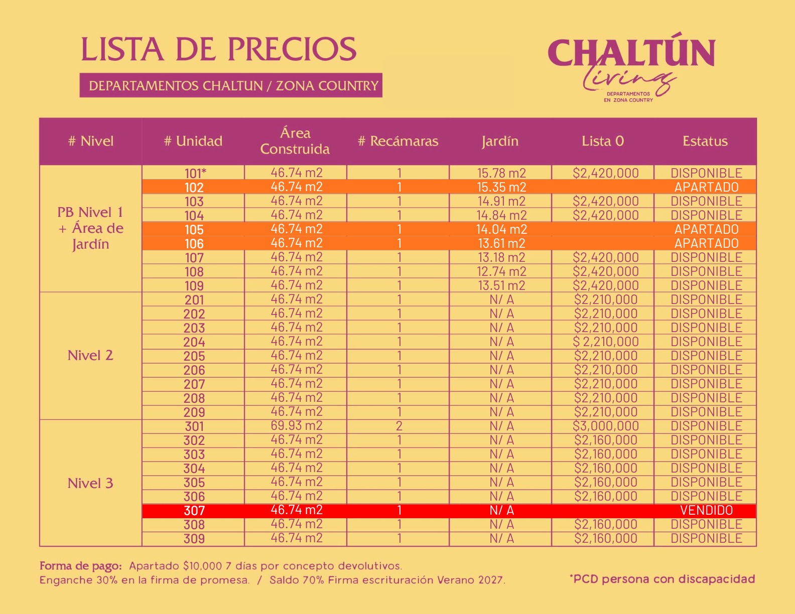 -Enganche: 30% en la firma de promesa.