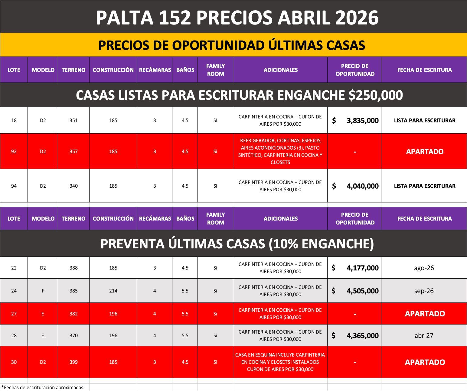 -La información, incluyendo la fecha de entrega y otros detalles adicionales, está sujeta a cambios sin previo aviso.