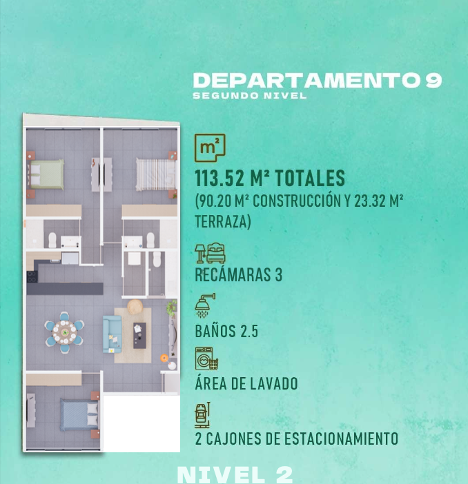 Departamento 9 en 2 nivel de 3 recámara, 2.5 baños en $2,890,000 MDP y de entrega inmediata