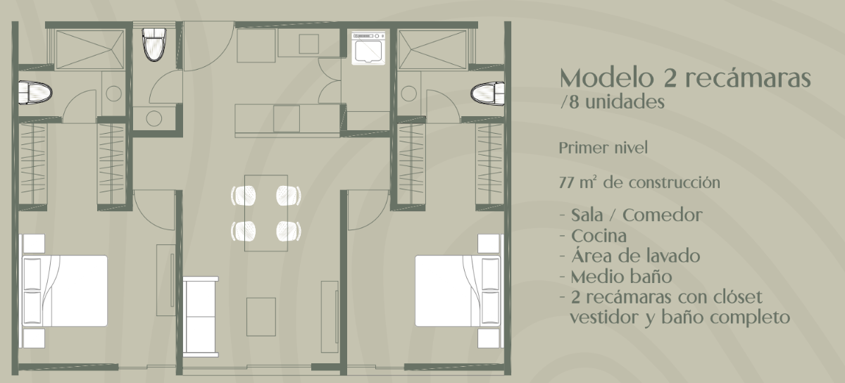 Con modelos de 1 y 2 recámaras, todos con espacios funcionales y diseñados para elevar el descanso y el placer, amenidades y comodidades que superan todas las expectativas.
