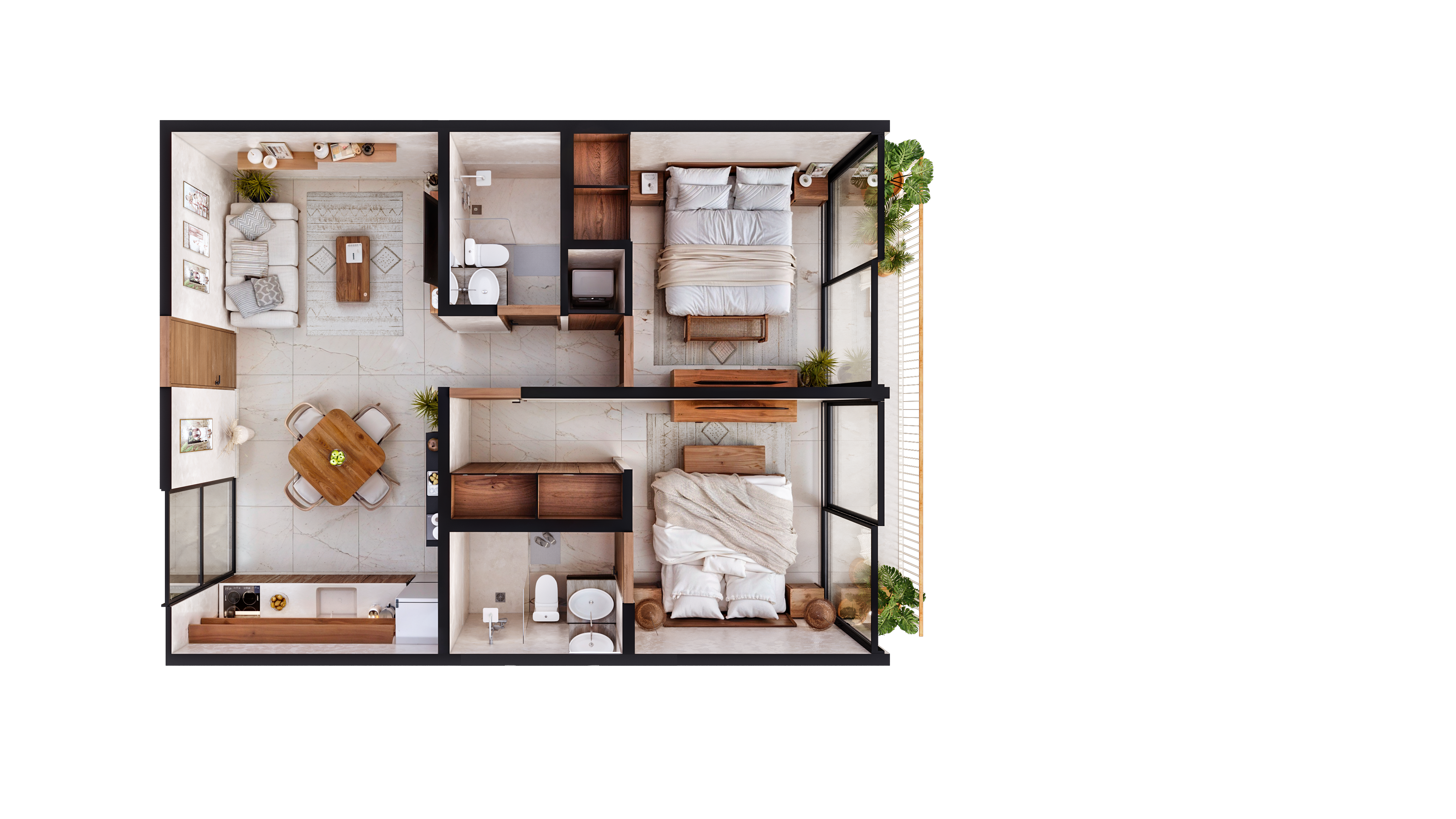 DEPTO. MODELO LEYENDA 60m2 + 7.46m2 de terraza + 1 cajón de estacionamiento